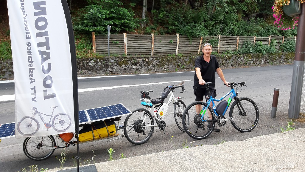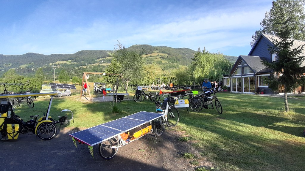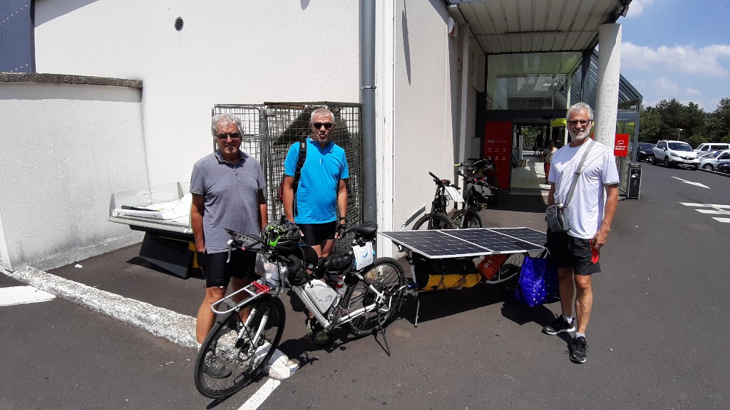 Chacun s’inquiètede cette journée de 120 km avec beaucoup de dénivelé. Moi, j’ai d’autres soucis, en premier lieu, mes plaquettes de frein qui faiblissent à nouveau : au bout d’une heure de route, je suis contraint de freiner avec les pieds pour descendre à Condat!
