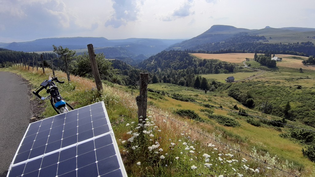 Mais une autre surprise m’attend : mes panneaux solaires ne produisent plus 1 seul Watt! Je mets 1h à trouver la panne: les fusibles de mes régulateurs solaires ont fondu à la chaleur. Je fais signe sur le bord de la route, c’est Gisèle qui me sauve en m’offrant 2 beaux fusibles tout neufs. Merci Gisèle !