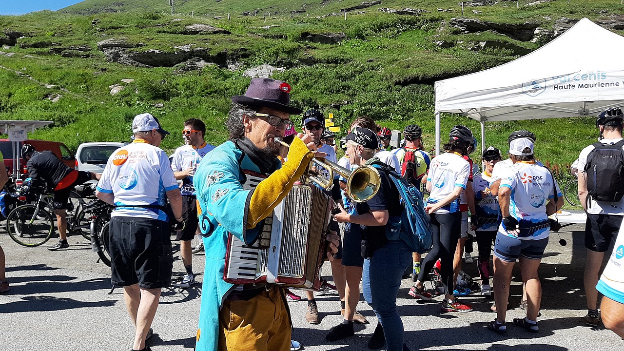 Arrivés au col, un petit bal s’improvise dans l’euphorie générale, entraînés par la poésie de l’Homme Fanfare.