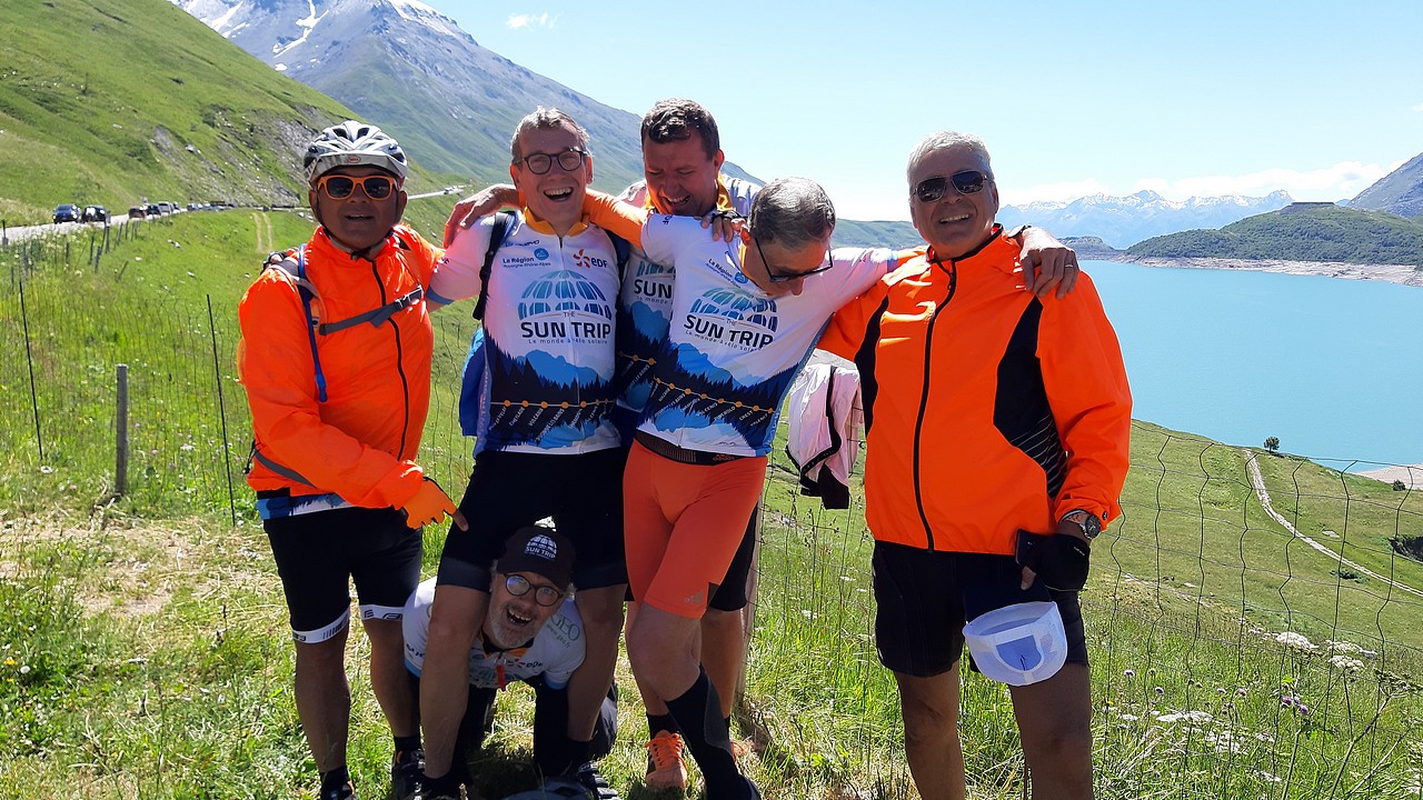 Au col nous attend l’équipe de l’agence Zeppelin : j’entends vrombir leur drones qui saisit des images des suntripeurs.
