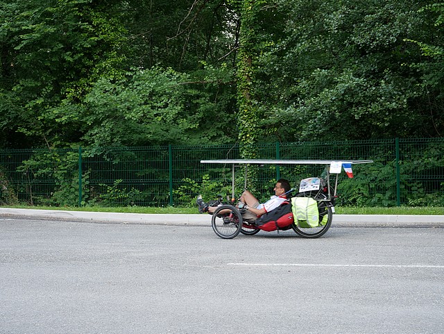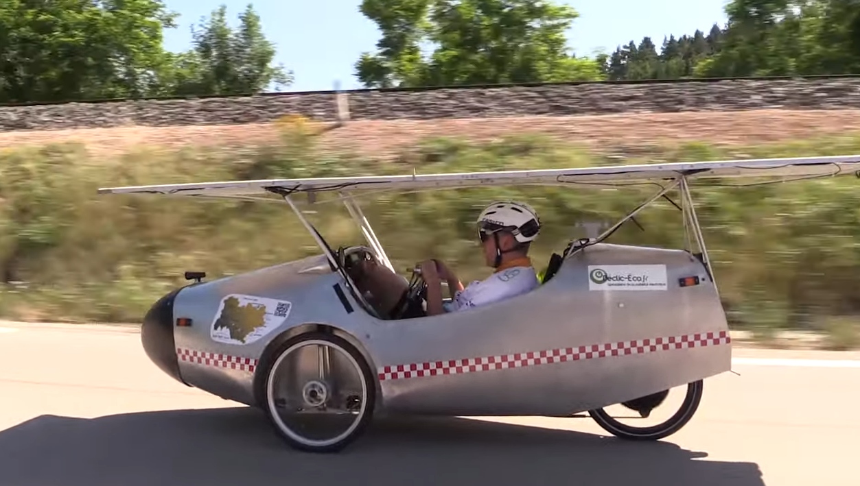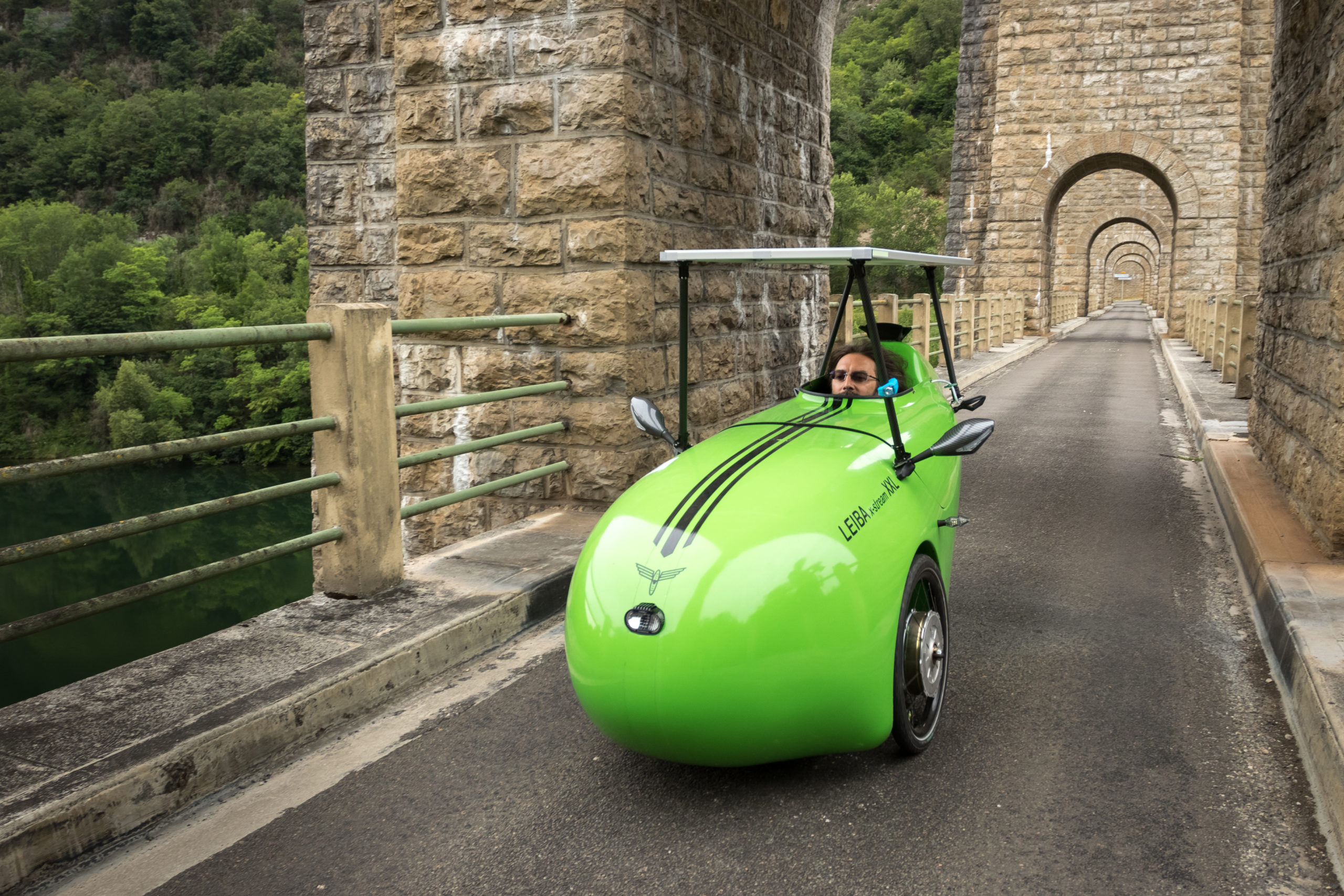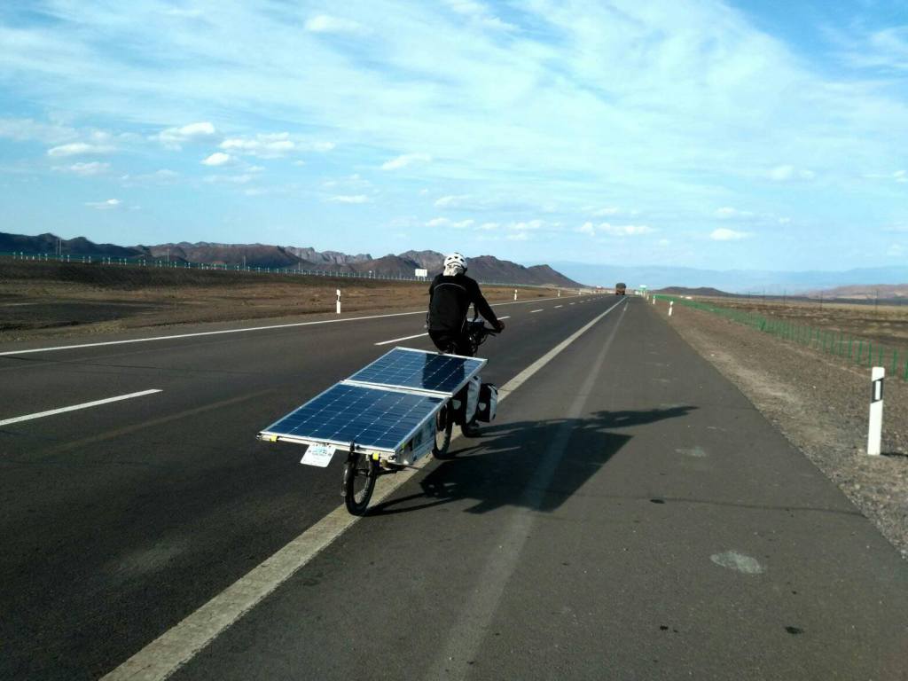 Sur les Sun Trip, les panneaux des vélomobiles sont toujours installés en toiture. Hors Sun Trip, Joerg Gebers a traversé la Chine en 2020 avec des panneaux sur une longue remorque très basse.