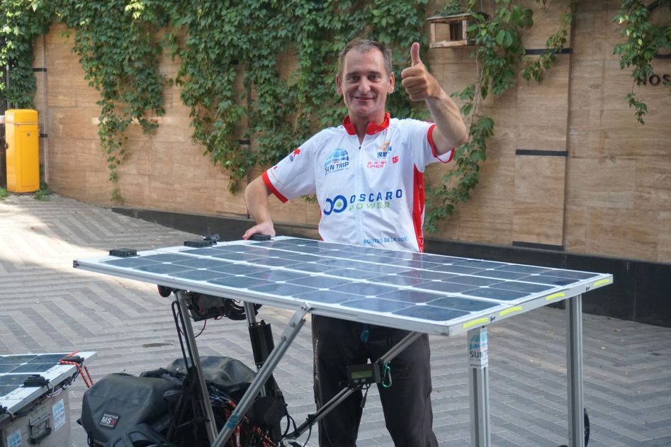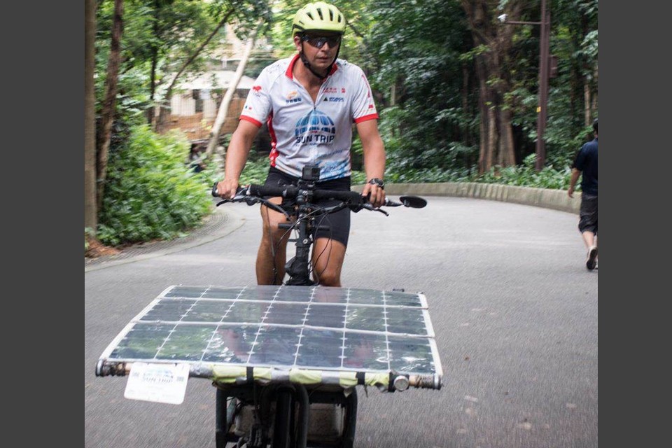 Une exception : Daniel Jenni qui a installé son panneau en « toiture » sur un vélo classique pour le Sun Trip 2018.