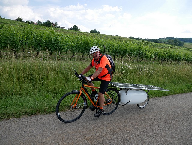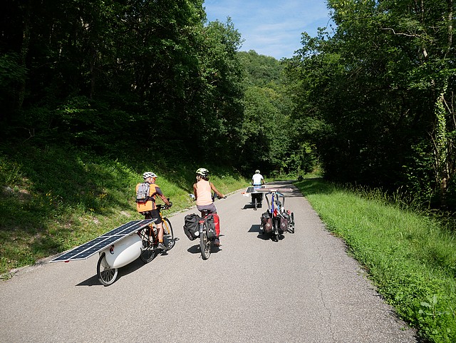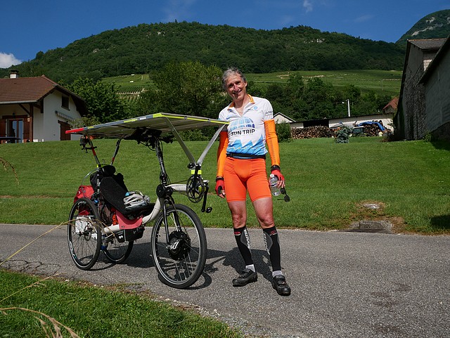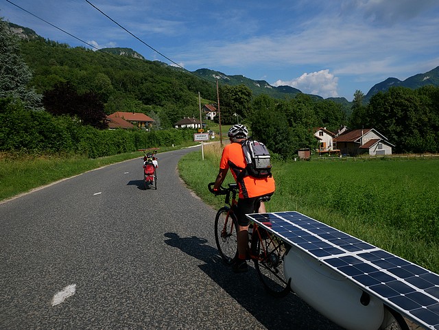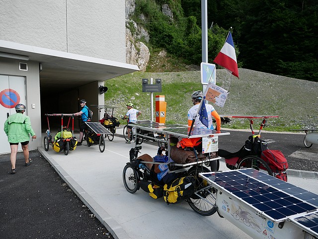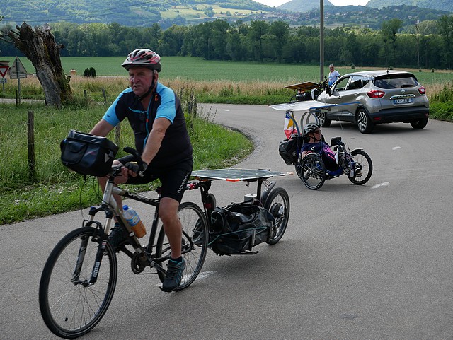 We were 20 solar cyclists to come together this morning of June 15: we were going to meet the 40 participants of the Sun Trip during the few days of their prologue from Lyon to Chamonix, accompany them, encourage them; we were enthusiastic about their journey and their vehicles. The association Vécolo was the organizer of this event “The loop of Friends of the Sun Trip”, thanks to them!