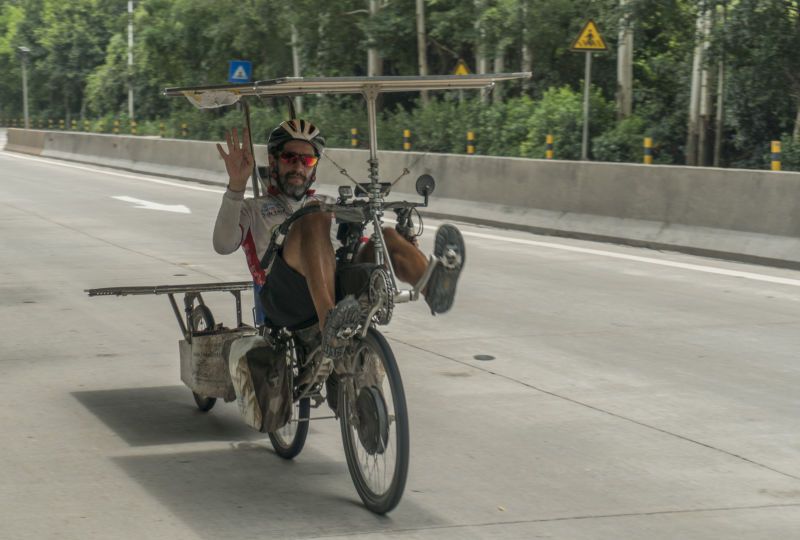 Stéphane has long been in second place, in the direct wake of Raf Van Hulle. On entering China, Stéphane chose a daring itinerary. But the Chinese authorities forced him to turn back what made him lose four days. In the Gobi desert, he had to face a more unfavourable wind than the first three suntripers.