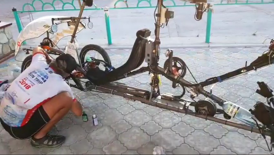 Technical incidents continue!By stef_bu / 10 July 2018 Laurent Souchet : sa toiture solaire s'est effondrée (route très mauvaise !) Laurent Souchet : la soudure qui a lâché Bernard et Yann Cauquil ont des problèmes de rotule Ils ont aussi des problèmes de rayons sur la roue arrière Views: 69