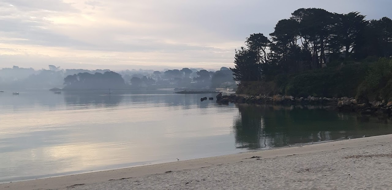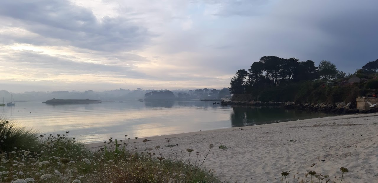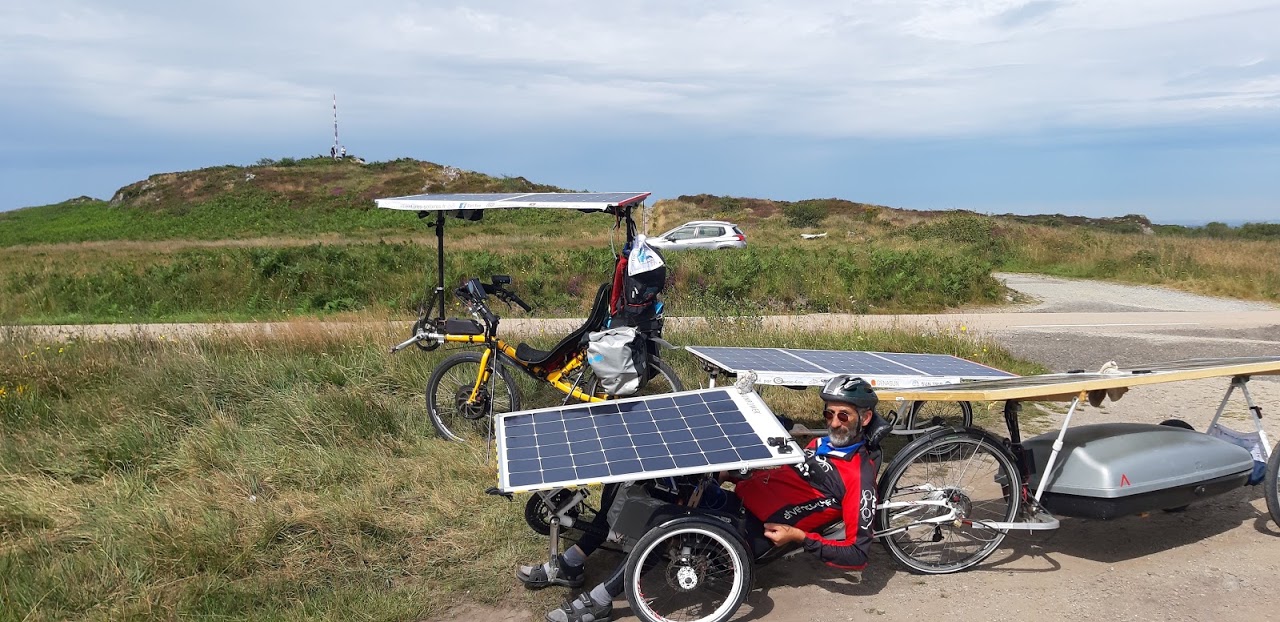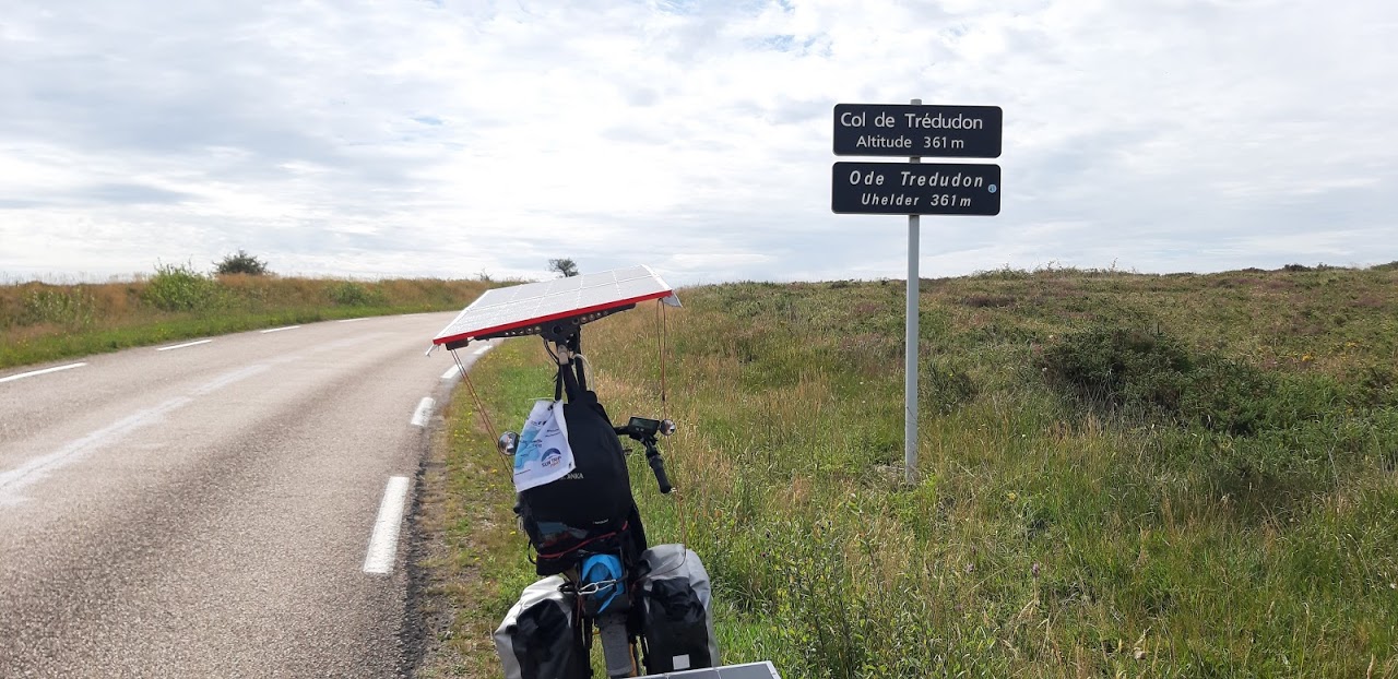 7h: départ de Plouguerneau avec une forte couverture nuageuse. Malgré les belles lumières sur la mer, le cycliste solaire est un peu inquiet de la journée qui s’annonce.