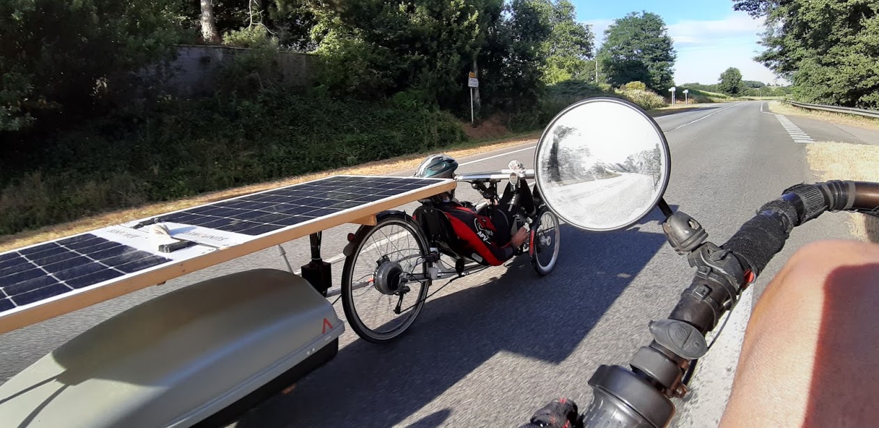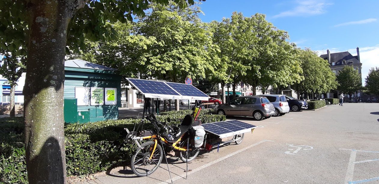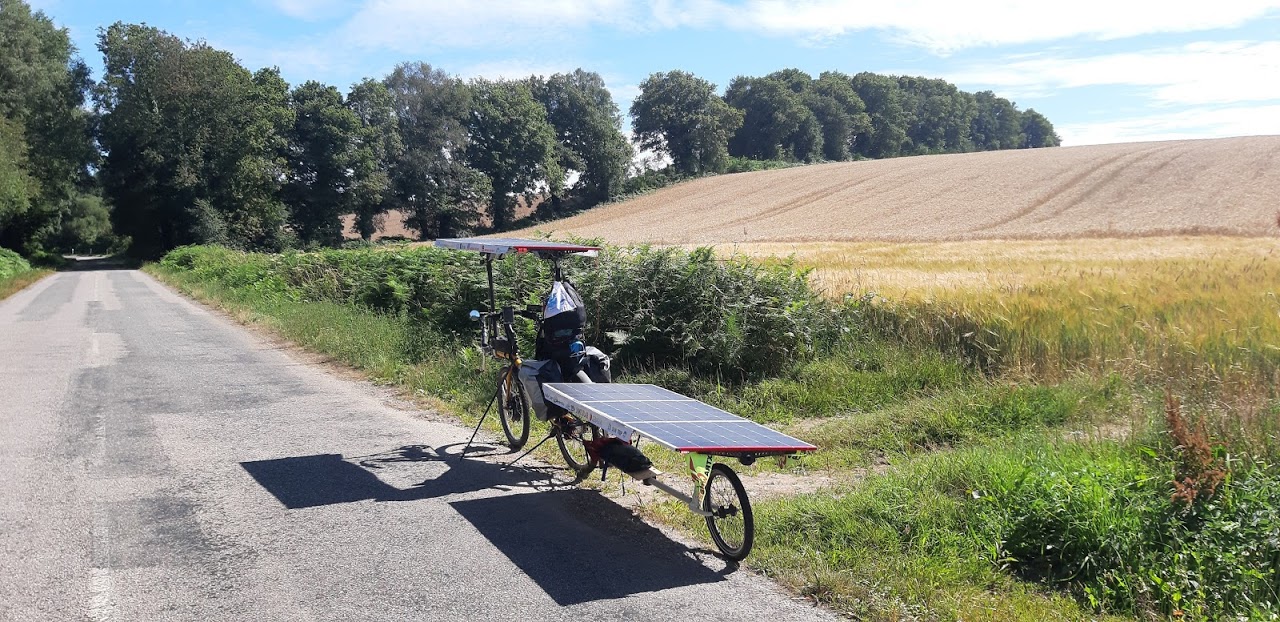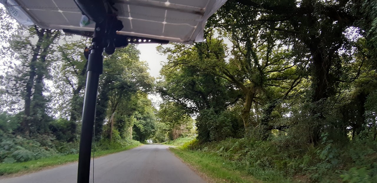 Et Komoot ne sait pas non plus que j’ai besoin de soleil pour ma batterie. Or la piste cyclable ombragée me fait perdre une précieuse énergie. Je trace donc un nouvel itinéraire en terrain découvert.