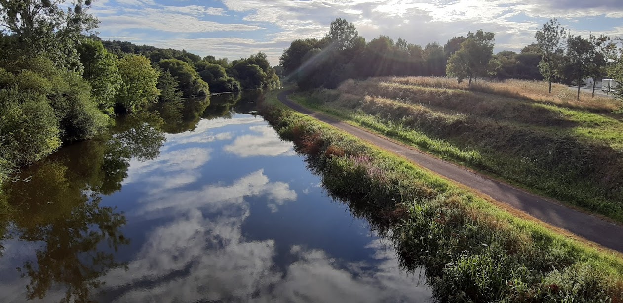 Plus tard, Komoot m’invite à prendre la piste cyclable le long du canal de Nantes à Brest.