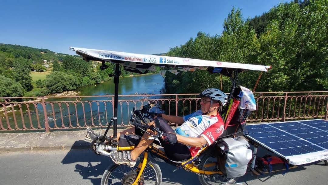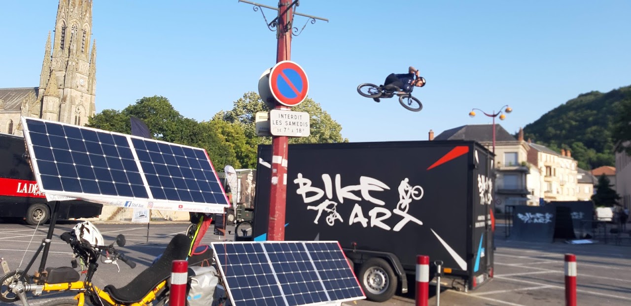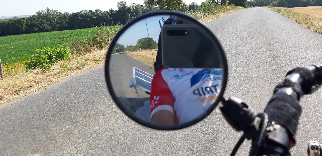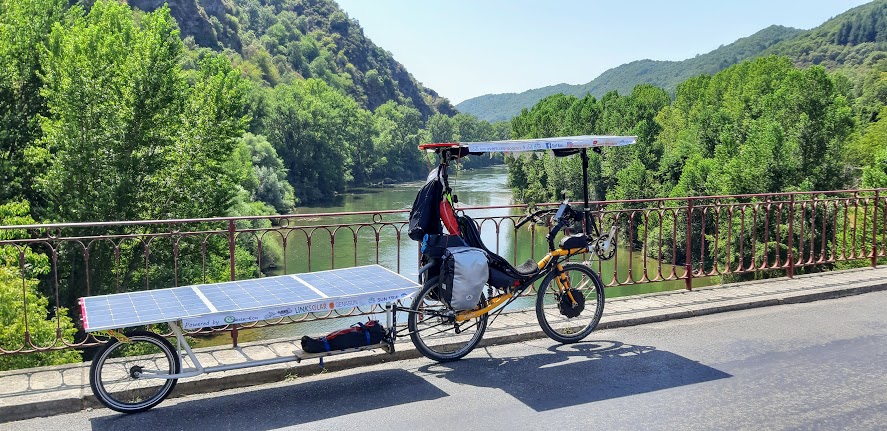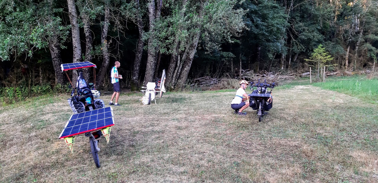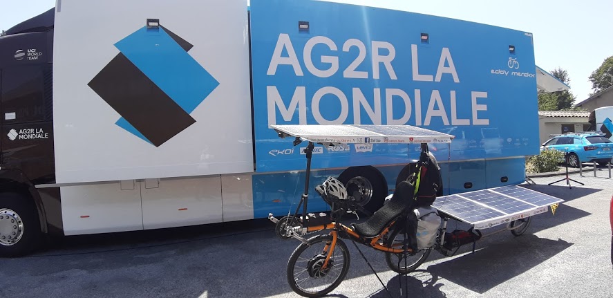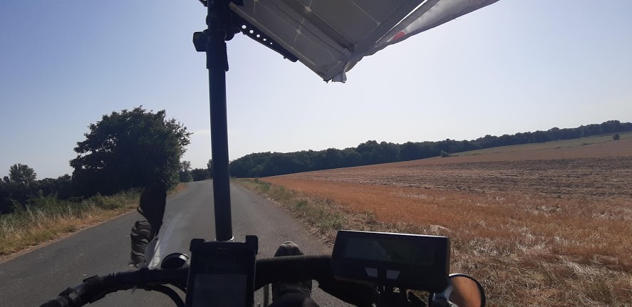 J’observe que le premier panneau de la remorque reste dans l’ombre de ma toiture solaire. Je perds donc 20% d’énergie du fait de l’orientation du soleil par rapport à la route et de le structure du vélo.