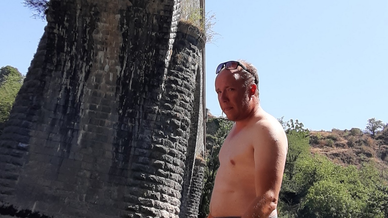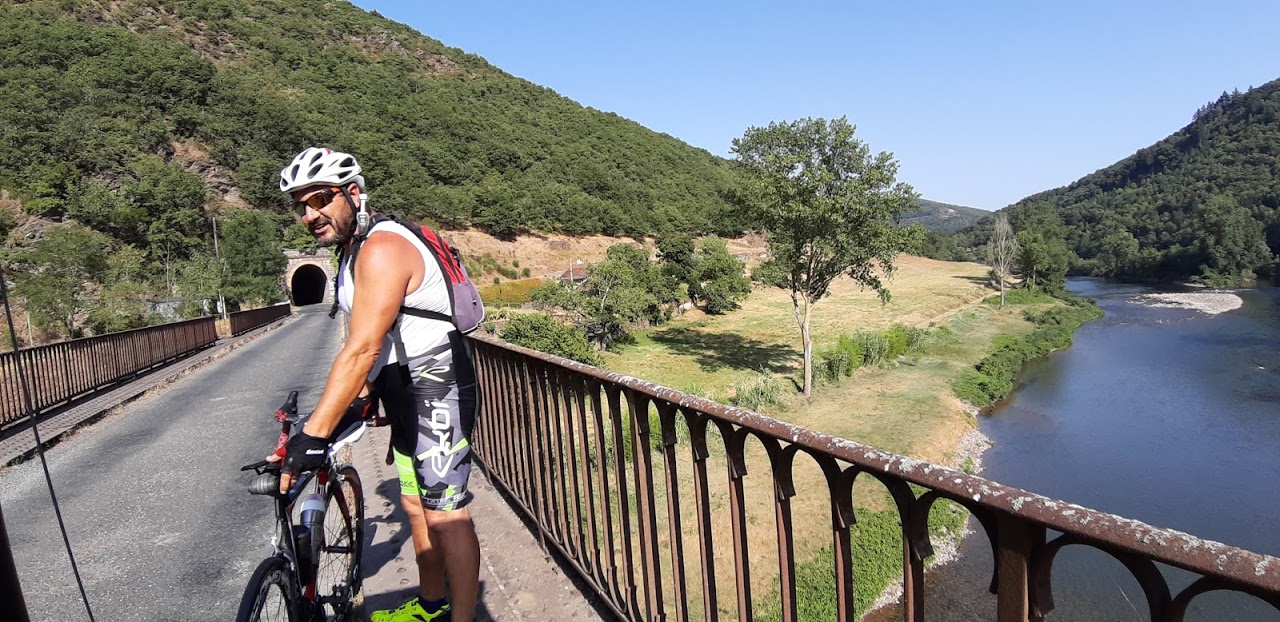 La route se poursuit sur une ancienne voie ferrée du siècle dernier, les viaducs succèdent aux tunnels, autant d’infrastructures qui n’ont jamais été exploitées à l’époque. Pas de trafic, la vallée est très belle, c’est génial!