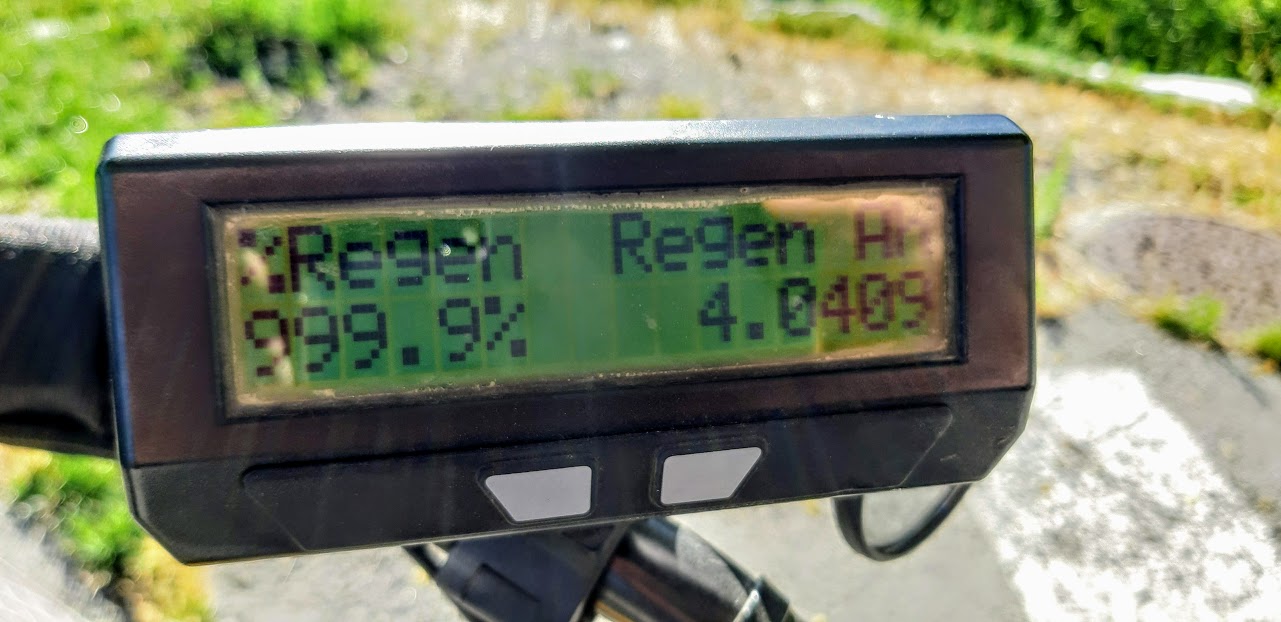 En route! Le col du Télégraphe n’est qu’une formalité, un faux plat montant et nous y voilà. Puis 12 km de descente pour Saint-Michel-de-Maurienne. Je règle la régénération pour qu’elle se déclenche à 25 km/h. Pour augmenter un peu l’énergie récupérée, je pédale dans la descente. Bilan énergétique pour un dénivelé négatif de 850 mètres: je récupère 4 Ah dans la batterie, cool!