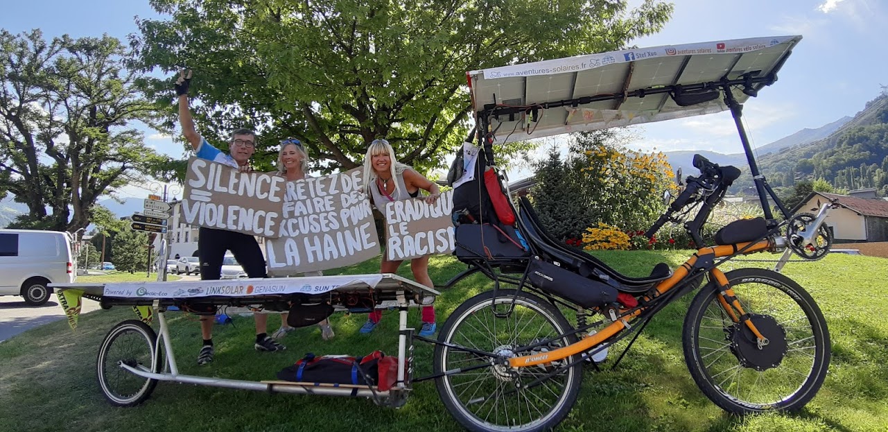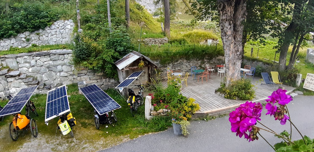 La descente sur Val-d’isère est magnifique, je ne me lasse pas (Sun Trip 2017, 2019). Ce décor m’inspire, je suis Cécile et Victor pour les photographier. Par contraste, la descente sur Bourg-Saint-Maurice n’est pas aussi sympathique à cause de la circulation. Je décide alors de régler la régénération à 45 km/h. Ça me permet de descendre très rapidement et, du coup, très peu de voitures me doublent.