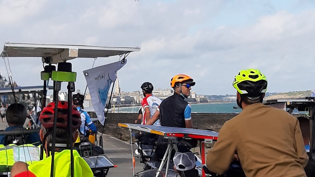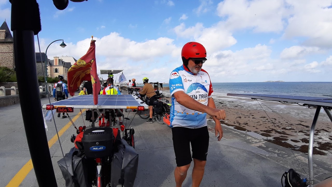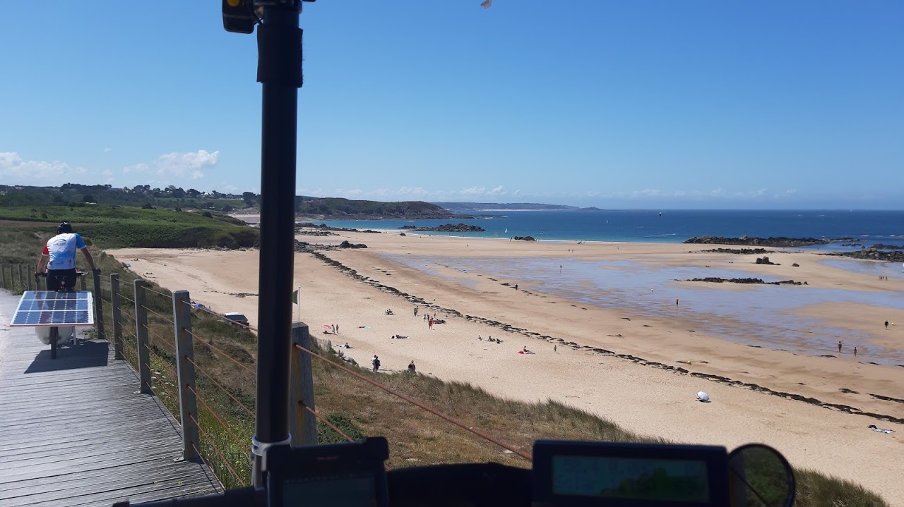 Départ groupé du gîte Etic Étapes. L’équipe Zeppelin nous filme le long de la plage avec son drone, cela promet de belles images!