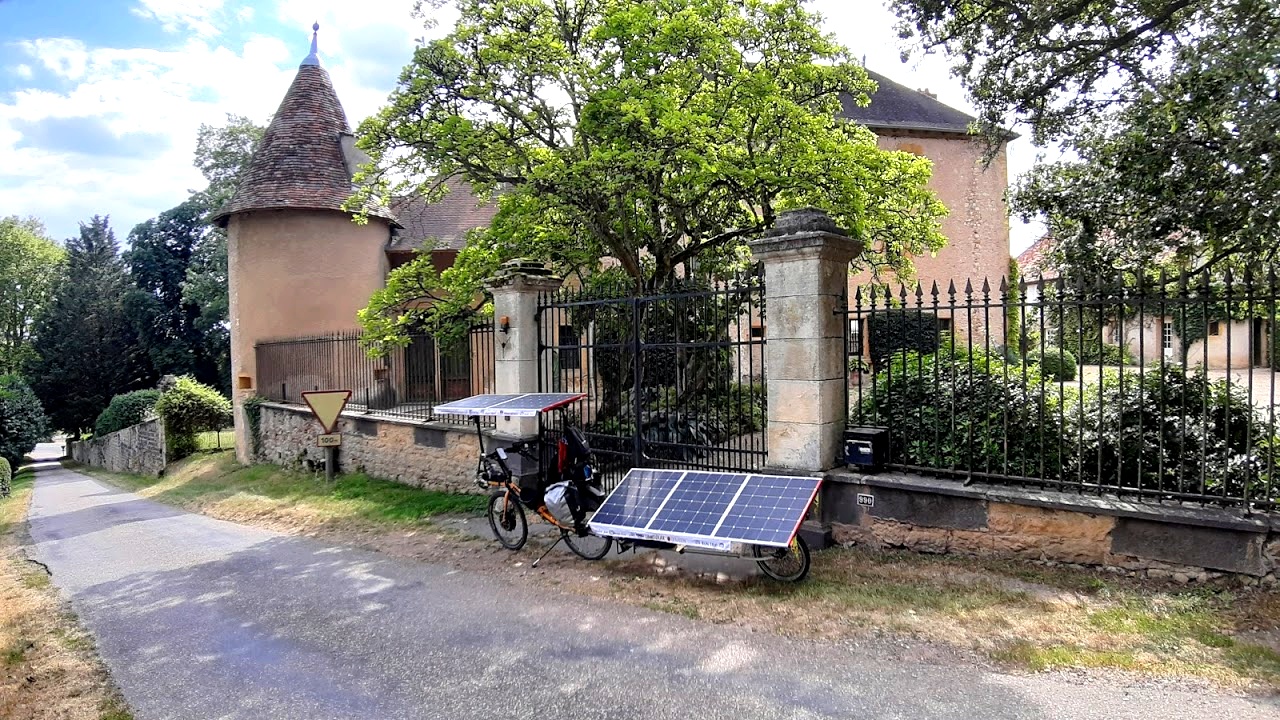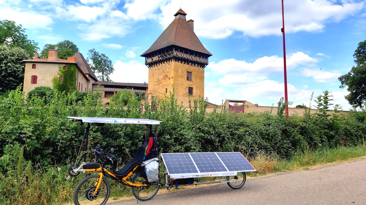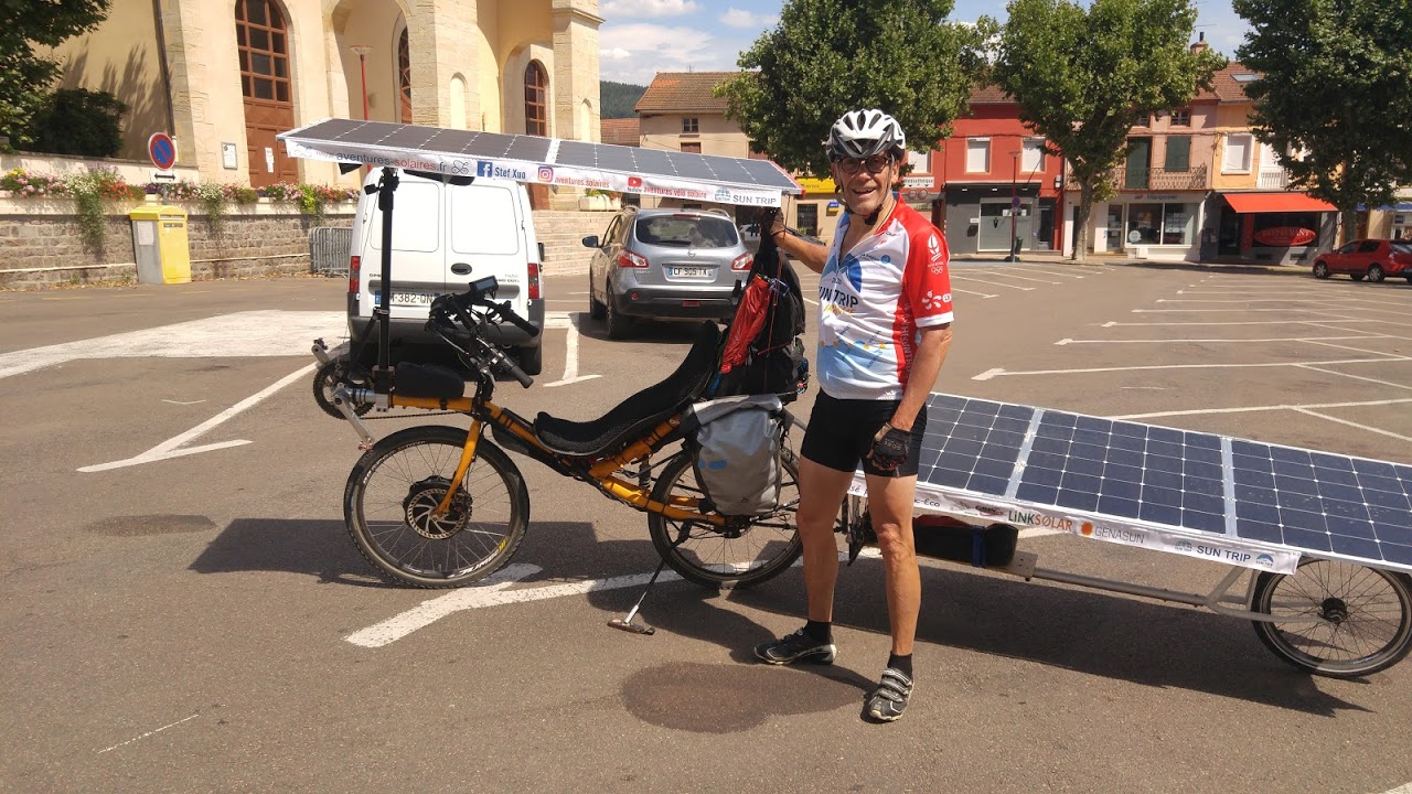 14 juillet : Nous nous élançons du Parc Lacroix-Laval à 13h, impatients de rouler. Chacun est libre de prendre l’itinéraire qu’il souhaite, mais bon nombre d’entre nous vont passer par le col des Écharmeaux. Le soleil est de la partie, la chaleur un peu lourde. Heureusement, cette sensation s’estompe bientôt grâce à la vitesse de nos vélos solaires!