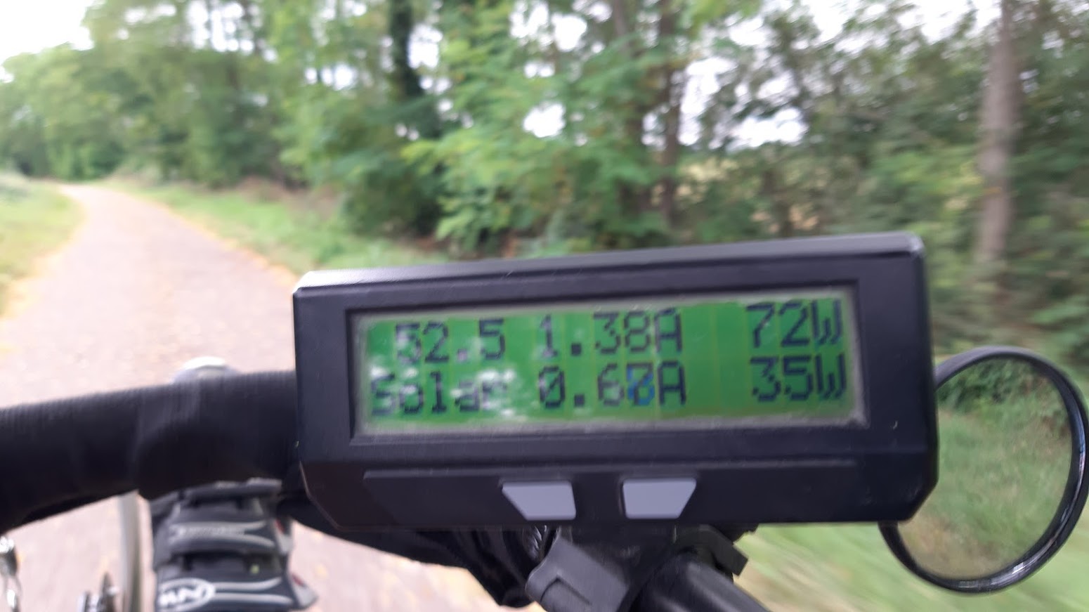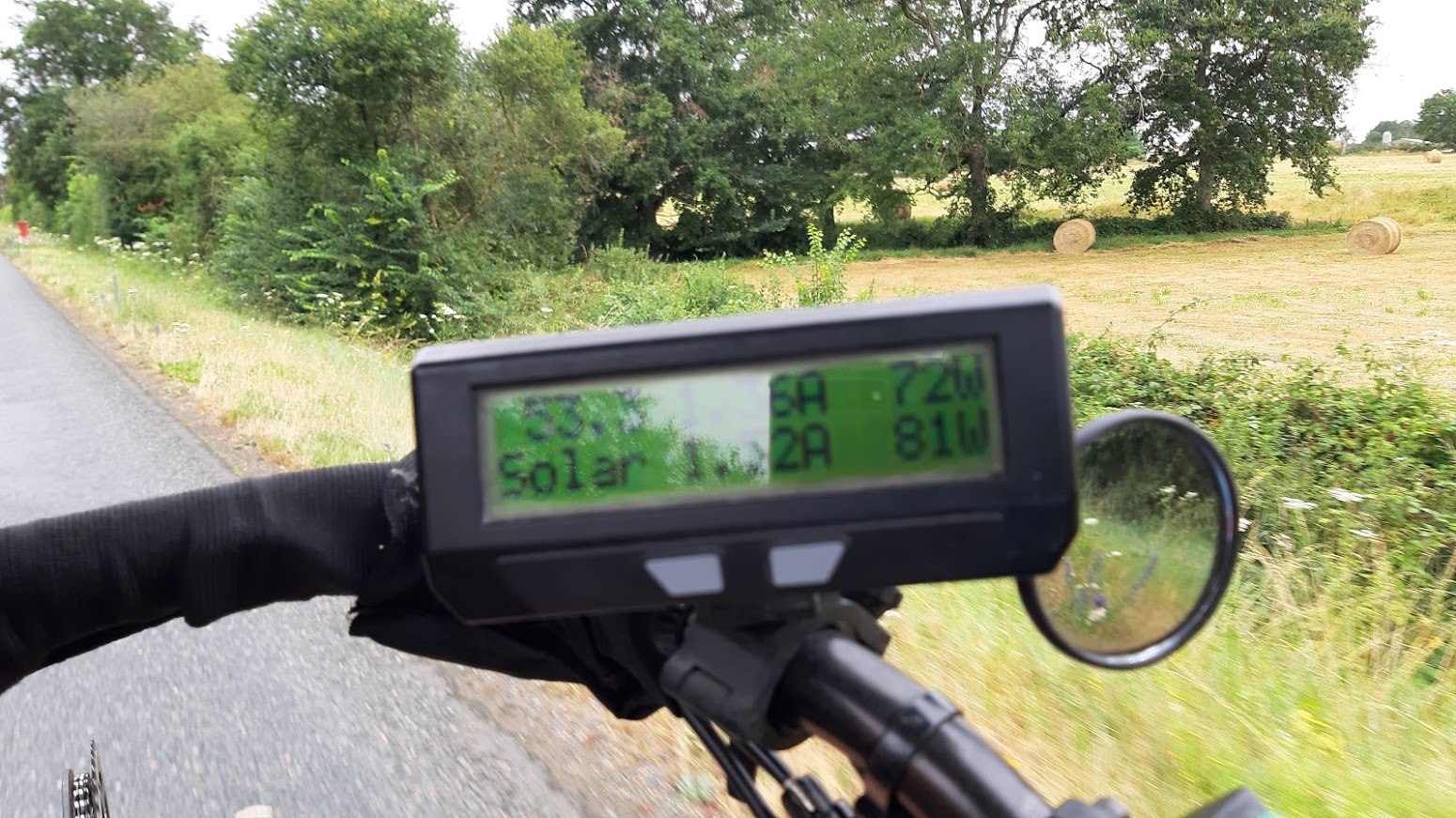 Bilan de Digoin à Sancerre : 166 km parcourus à 20 km/h de moyenne, c’est la vitesse à laquelle j’aurais roulé avec un vélo et 2 sacoches, sans moteur, sans batterie, sans panneaux solaires.