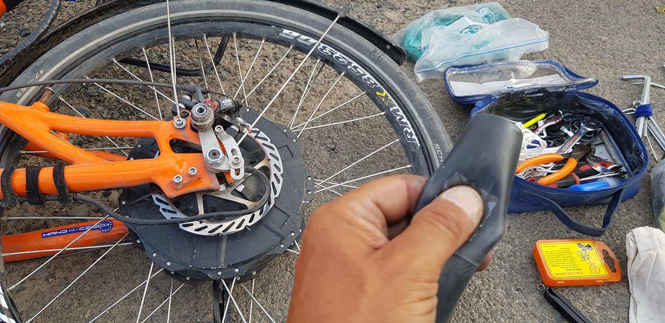 41e jour de voyage : Laurent Souchet traverse le désert de Gobi, en Chine, il rencontre un cycliste Chinois de Hamin, puis il traverse un lieu situé à -39 m en dessous du niveau de la mer… dans la vallée du souffle du dragon.