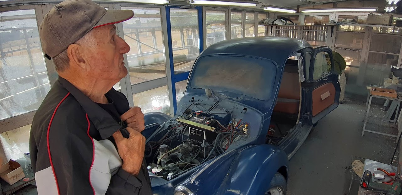 Aujourd’hui, il retape des voitures Panhard. Je visite son musée personnel et ses ateliers. Il aurait pu me raconter encore et encore.