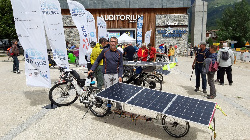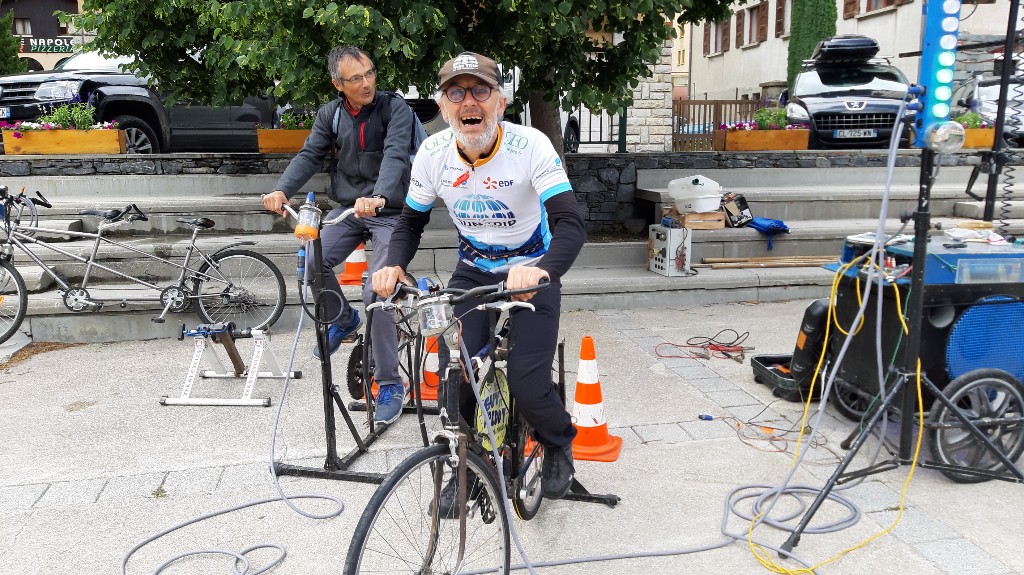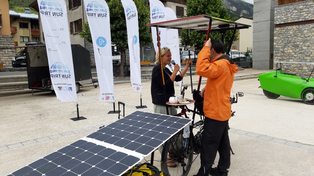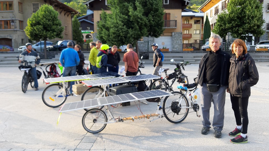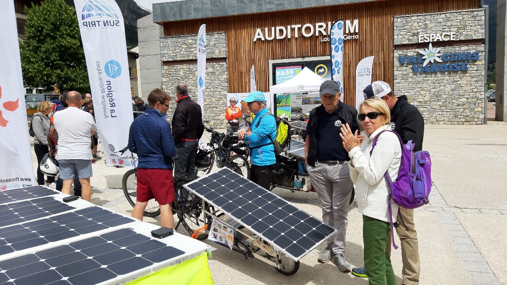 L’après-midi, nous exposons nos vélos solaires pour le grand public sur la grand place de Lanslebourg. Les contacts avec les touristes et les locaux sont nombreux et très sympathiques.