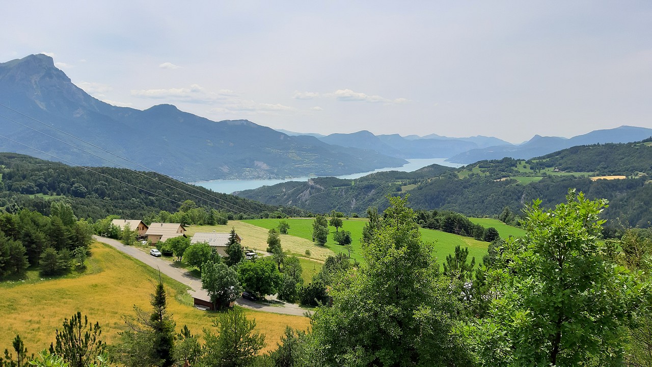 L’après-midi, l’itinéraire tracé par Vécolo nous offre des routes pittoresques, avec un beau panorama sur le lac de Serre-Ponçon. Et il nous épargne les routes surchargées du fond de la vallée.