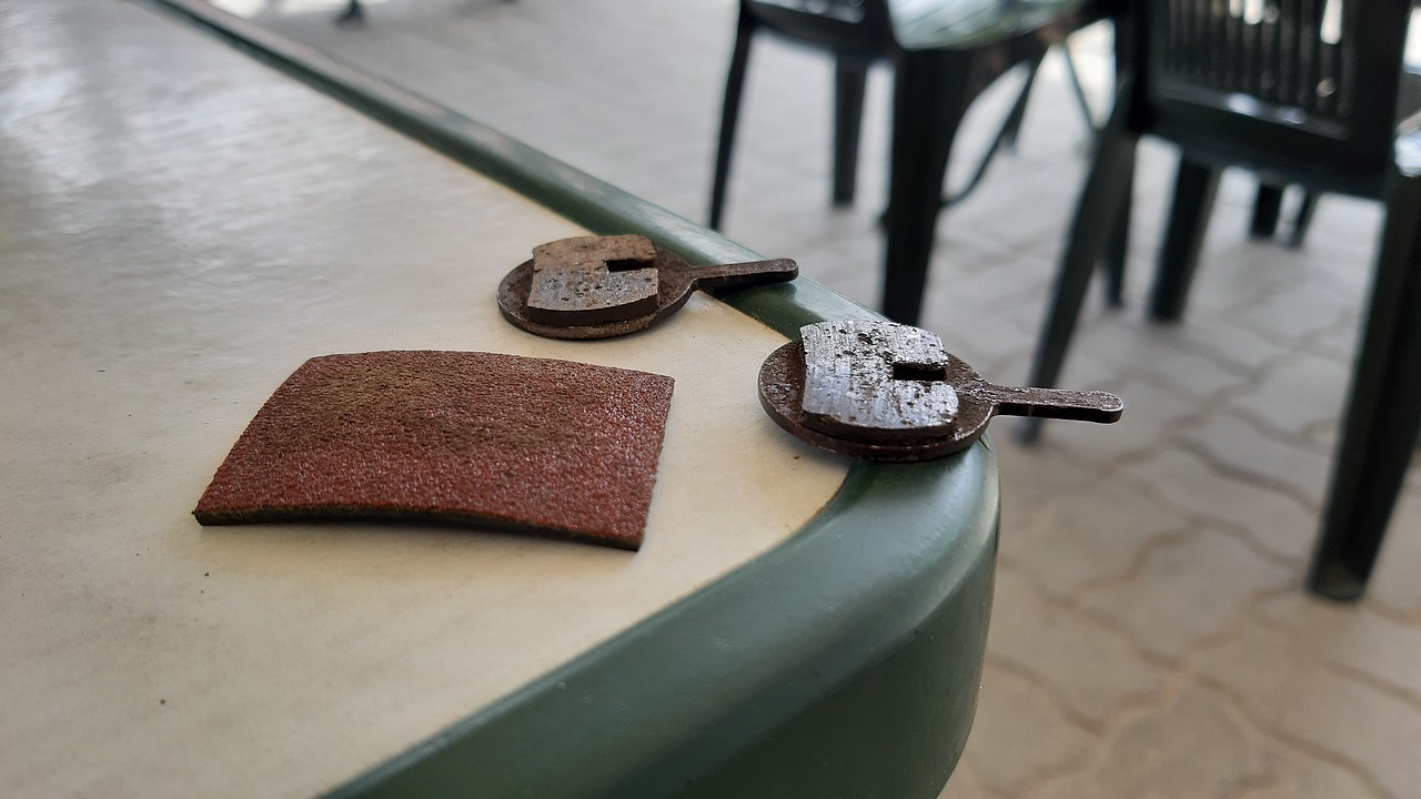 Arrêt forcé: je dois démonter à nouveau la roue arrière pour resserrer la roue libre. C’est devenu une routine, maintenant! Tout comme le ponçage des plaquettes de frein.