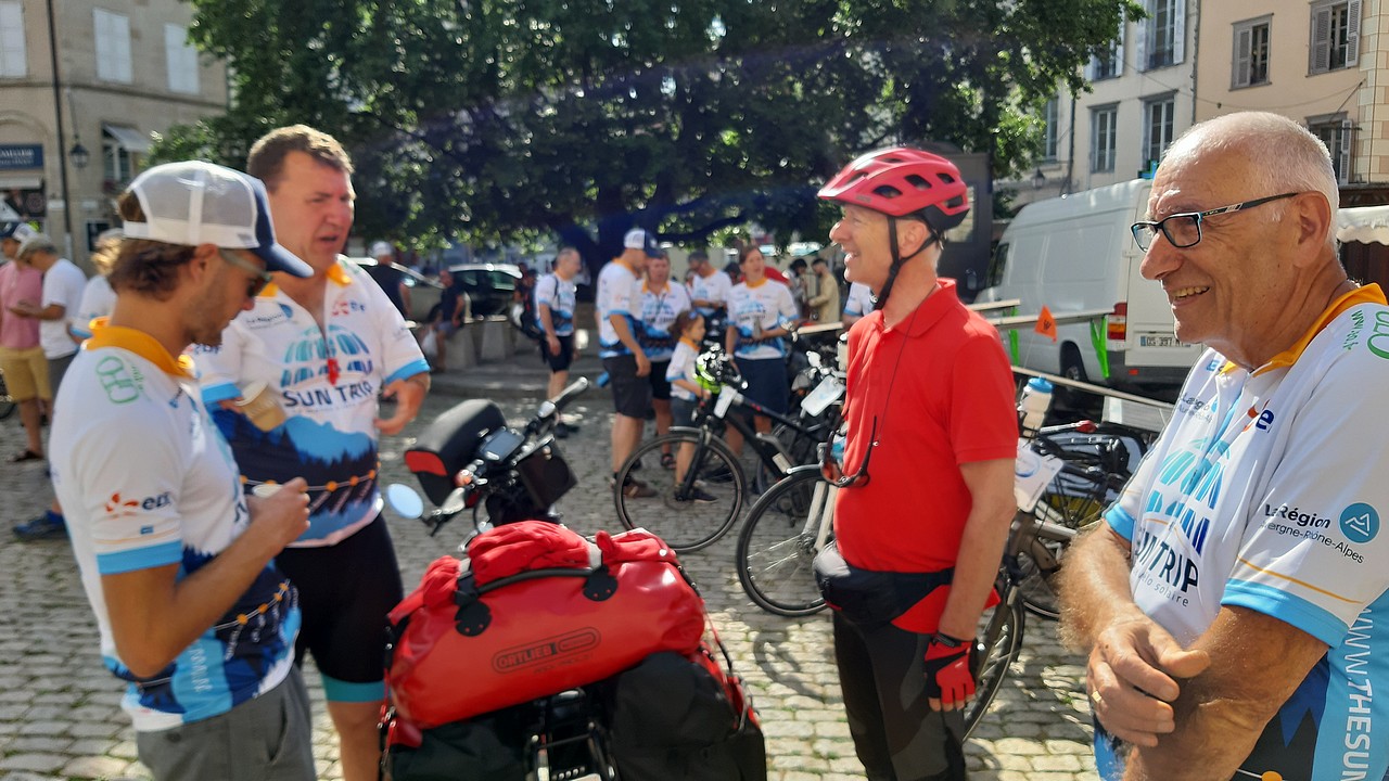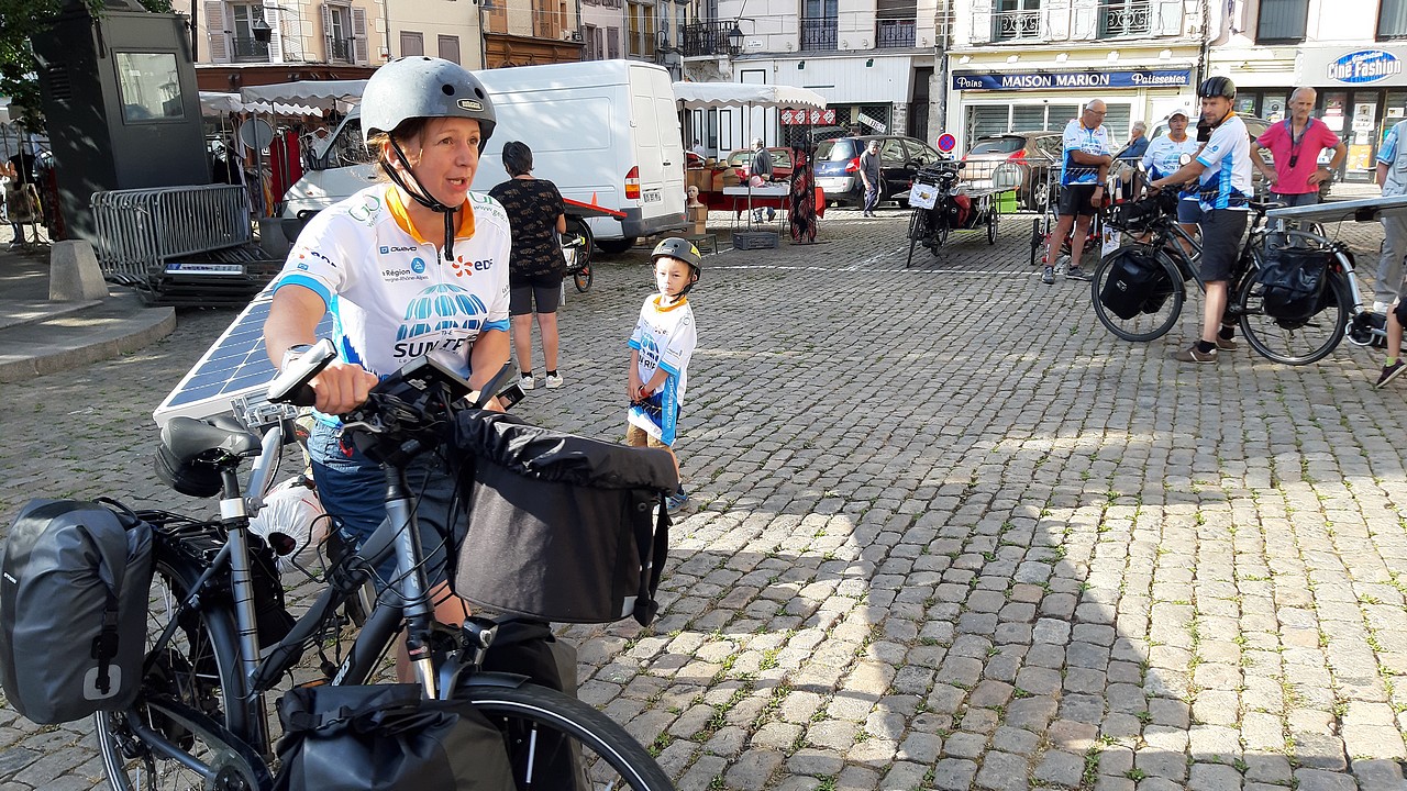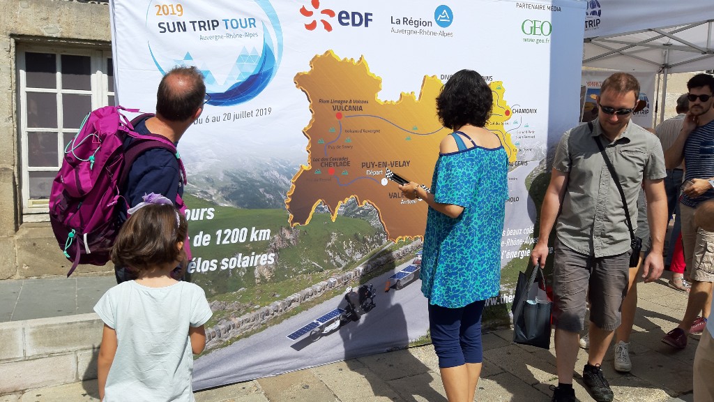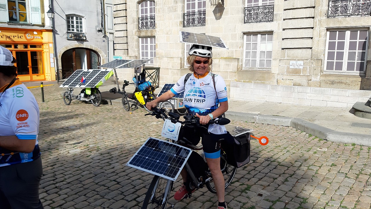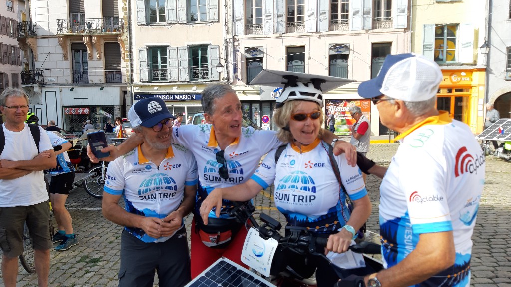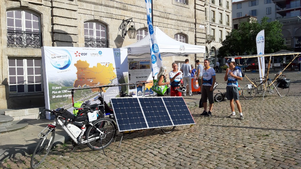 We are 55 solar cyclists to start this morning from Le Puy-en-Velay: each suntripeur installs his solar bike on the Place de l'Hotel de Ville in an atmosphere of excitement and enthusiasm . A great animation reigns, the exchanges with the public are rich, the passionate conversations …
