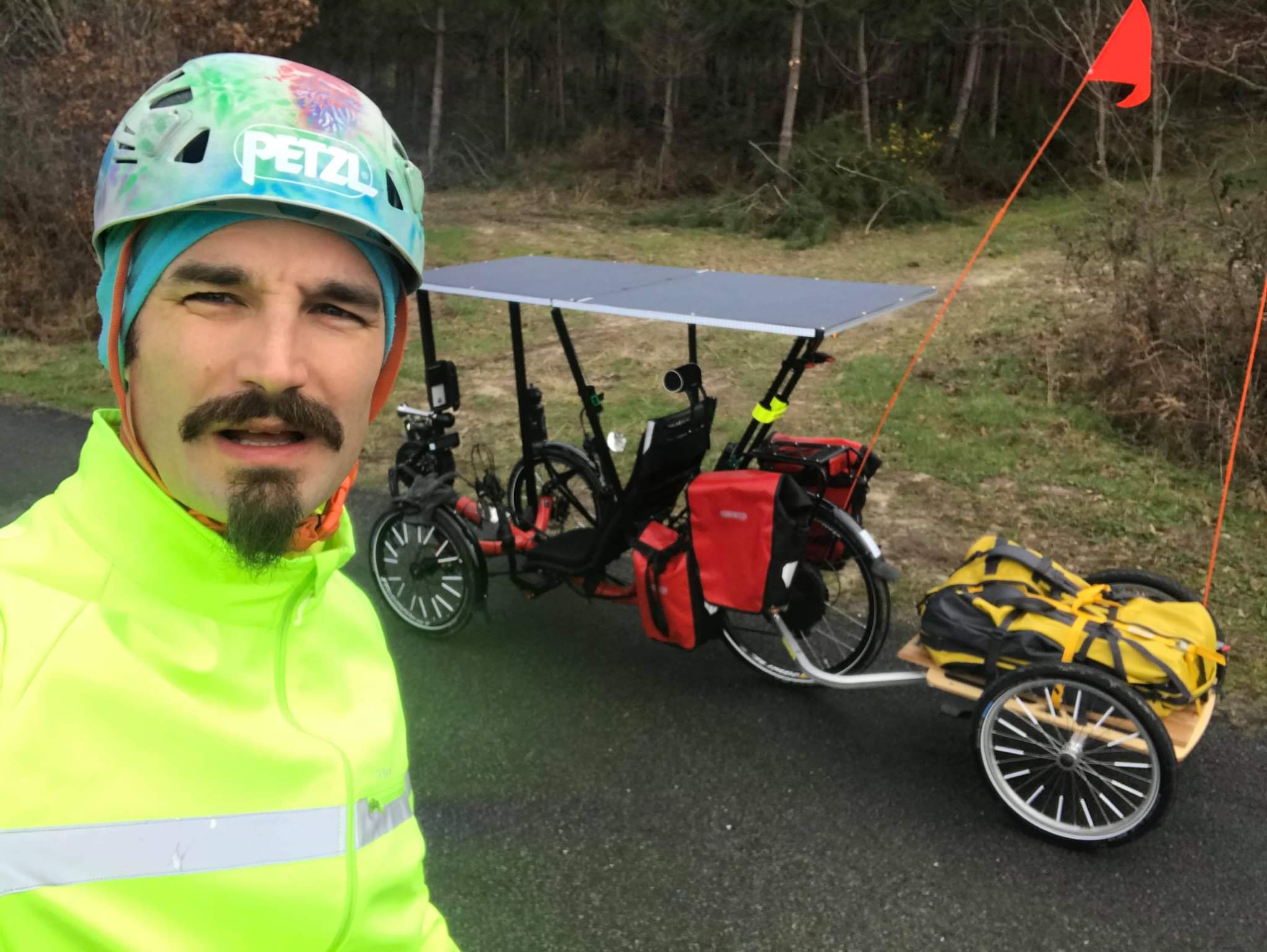 Lo había conocido en Pau el verano pasado, había venido a conocer a los participantes del Sun Trip France 2020 y a ver sus bicicletas solares. Estaba muy entusiasmado con este modo de transporte, ¡y tuvimos una buena charla!