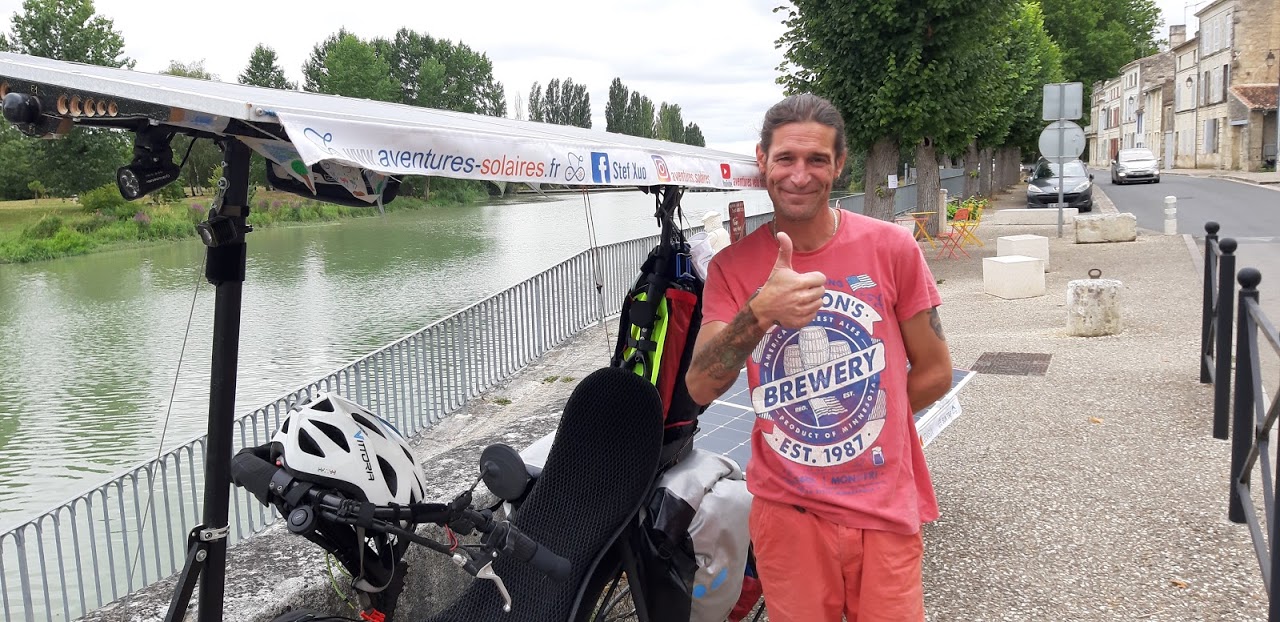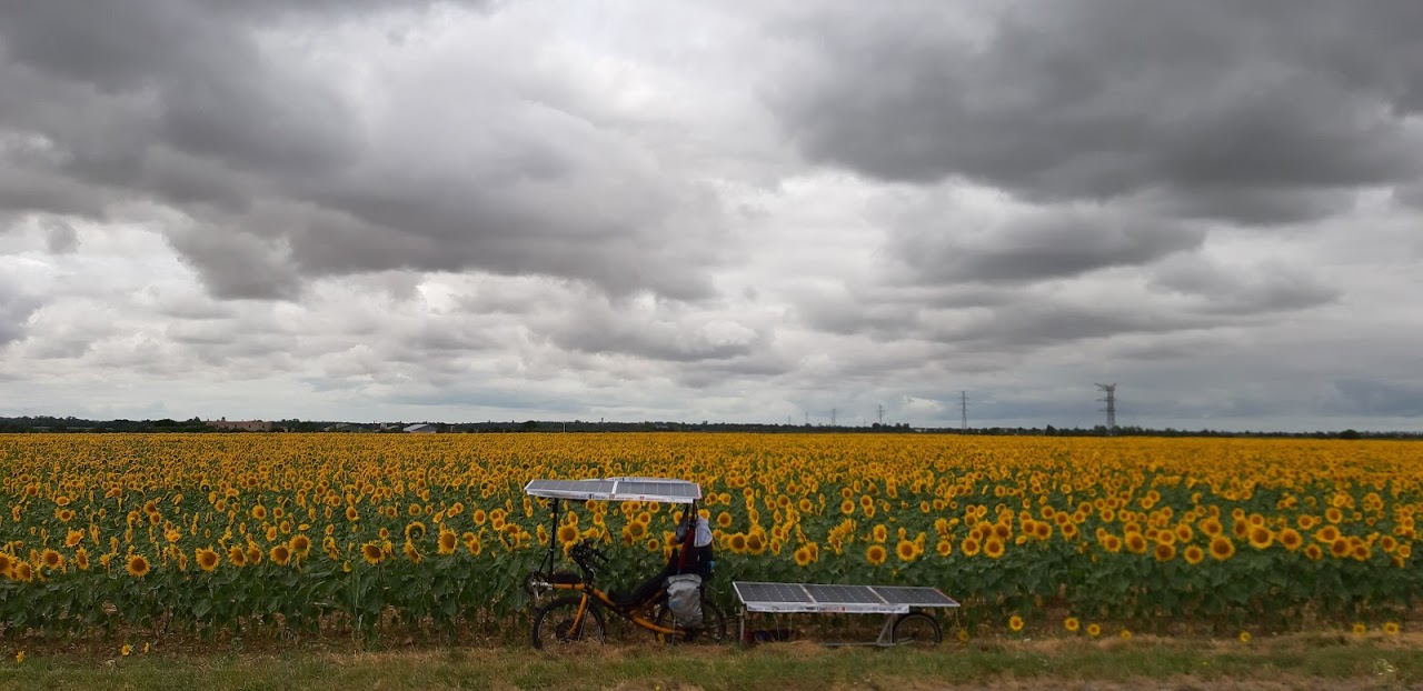 Peu après Marans, au coeur du Parc naturel régional du Marais poitevin, je goûte enfin au calme des routes de campagne. C’est l’occasion d’une photo au milieu de tournesols. Cette image sera reprise par le journal cote-d’orien Le Bien Public dans son édition du 5 août.
