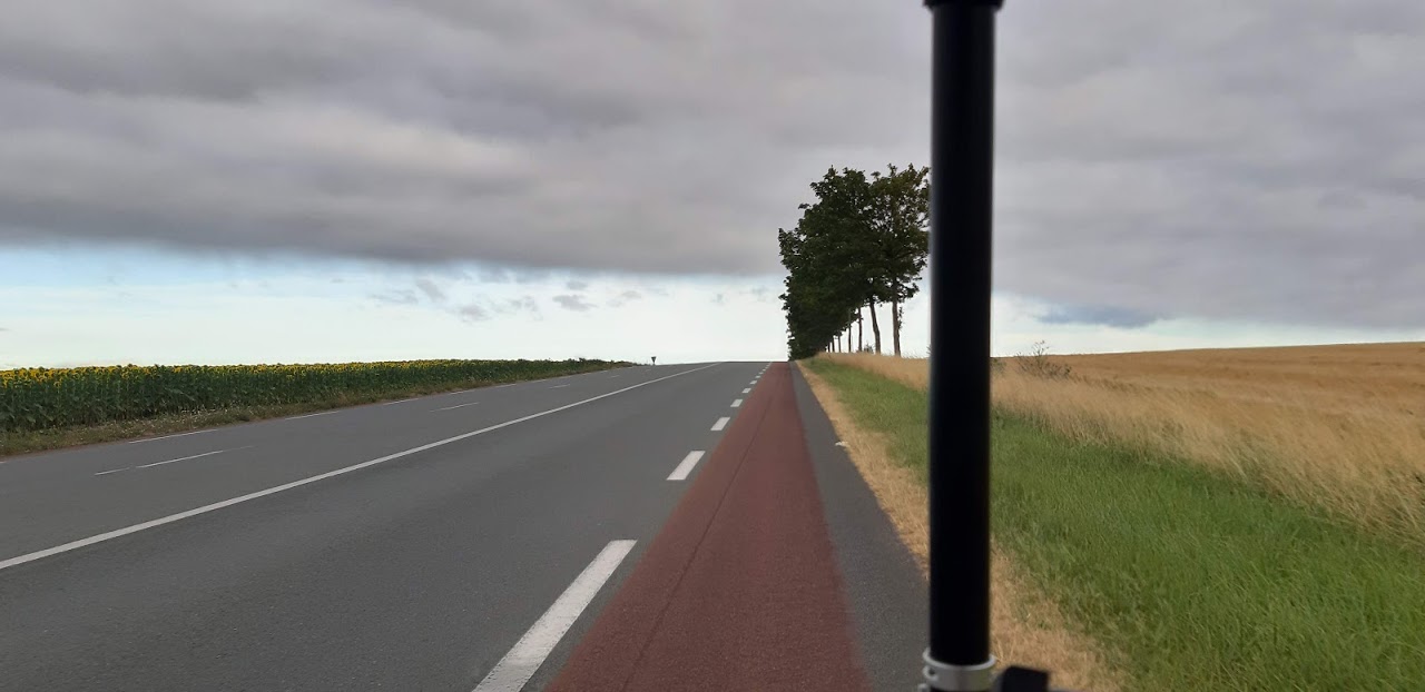 Bientôt, je me retrouve sur une route à forte circulation avec moult camions, camping-cars, voitures… L’enfer! J’aurais mieux fait de traverser Luçon qui semble être une belle ville. Trop tard, il faut prendre mon mal en patience.
