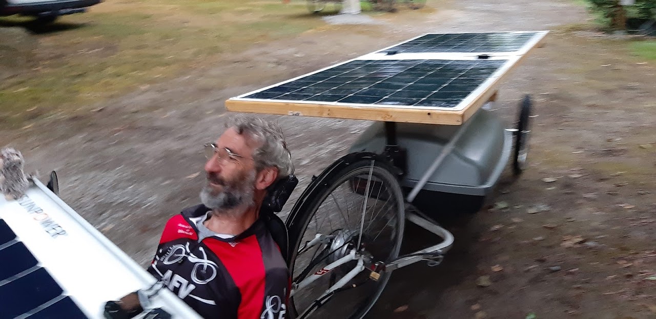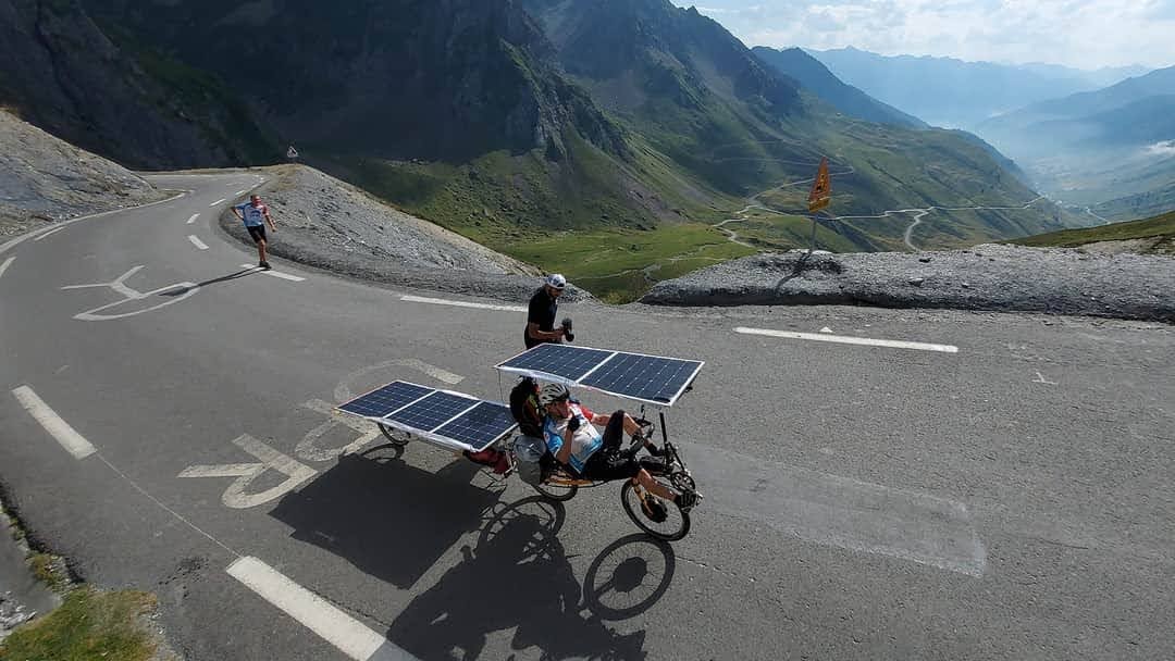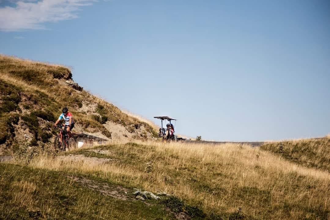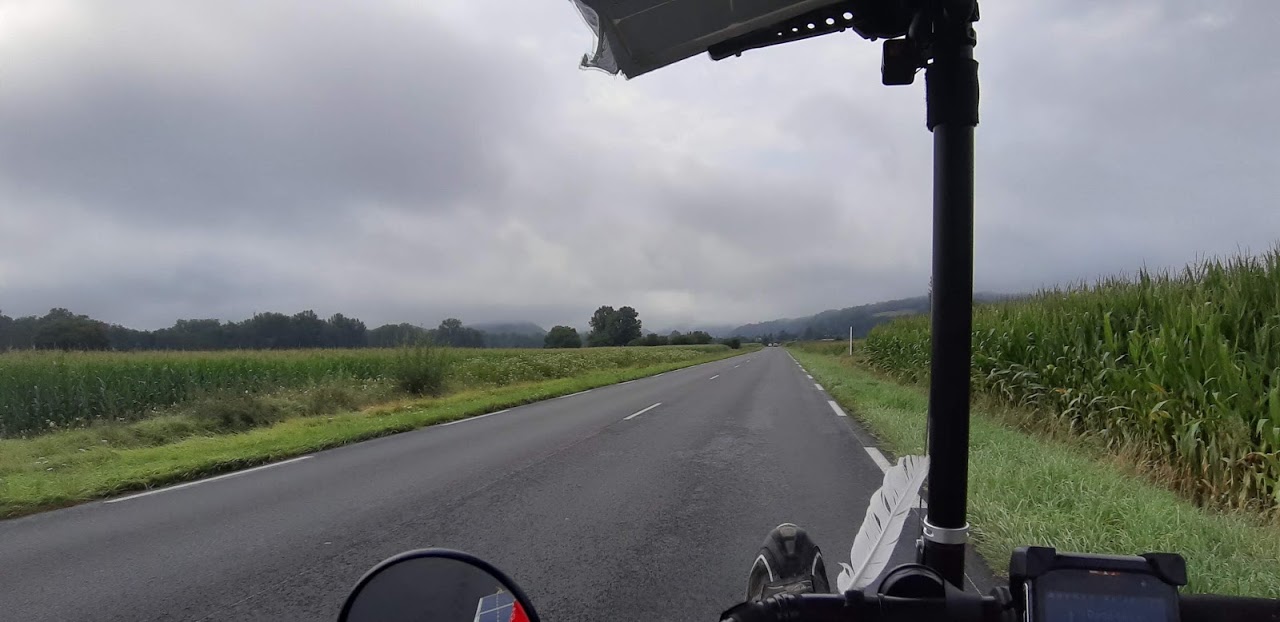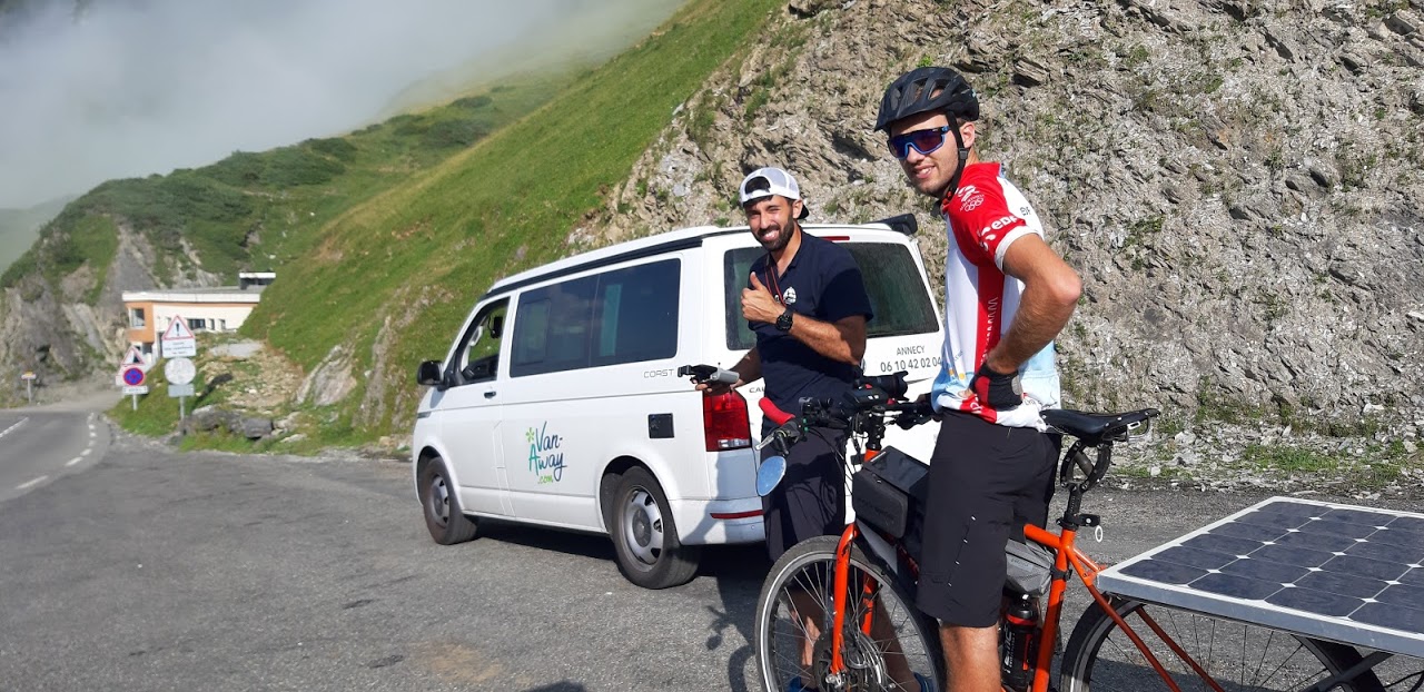 L’après-midi est très avancée, il fait très chaud. À Barèges, je rattrape Johan et Léon. La montée est raide et Johan me dit que son moteur est déjà à 110°C. Ce n’est pas bon signe car nous ne sommes qu’au début de l’ascension. Il est lourdement chargé avec sa carriole, mais elle est indispensable pour les siestes de Léon. Johan devra s’arrêter souvent pour faire refroidir son moteur.