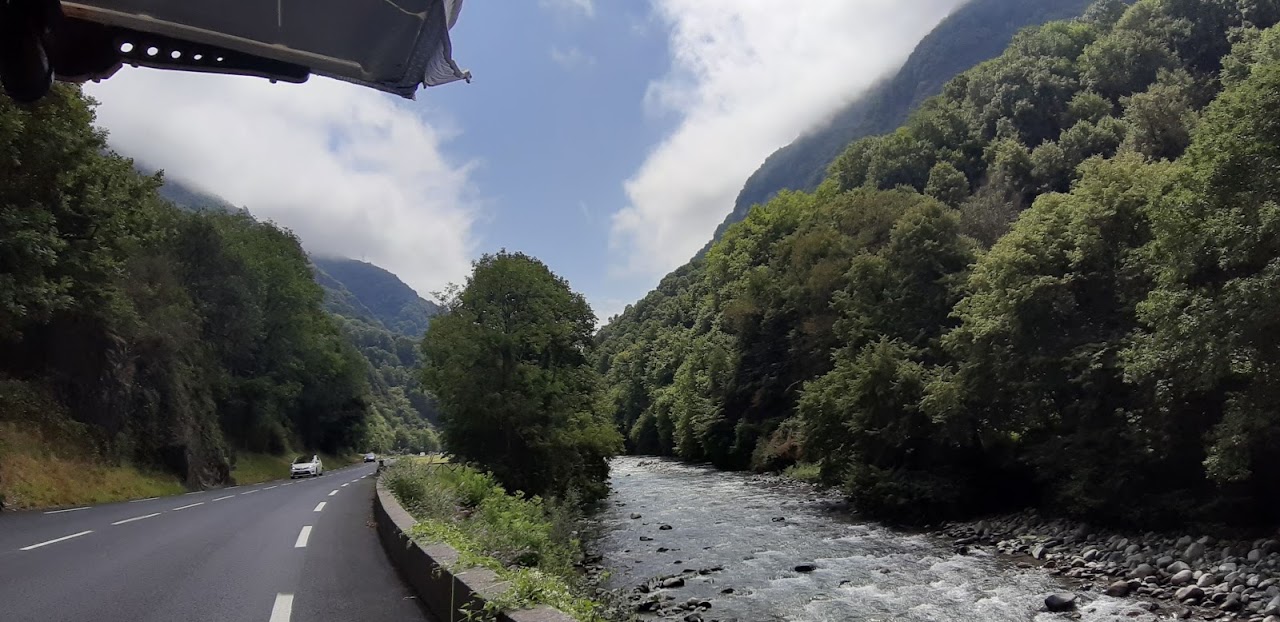 Après ce moment de repos, nous attaquons la descente, Maxence et moi, sous l’oeil du drône de Samy. Jusqu’au camping de Bagnères-de-Bigorre où nous retrouvons Michel, Christian et Gilles.