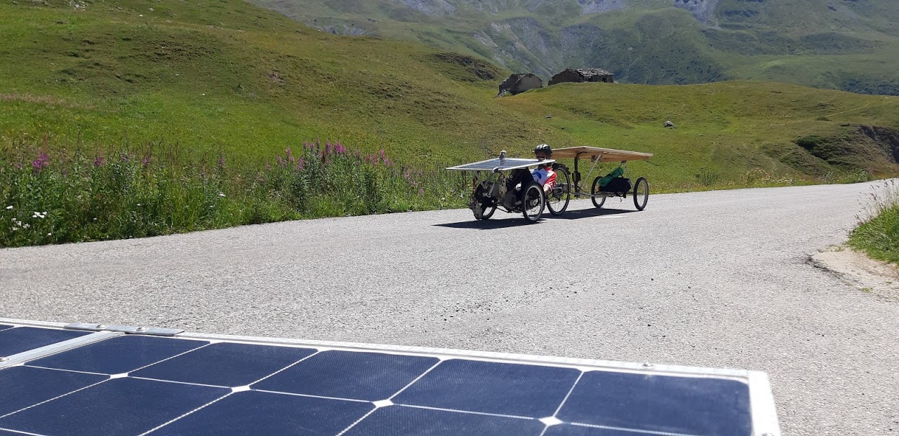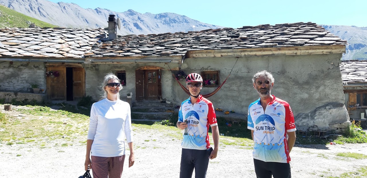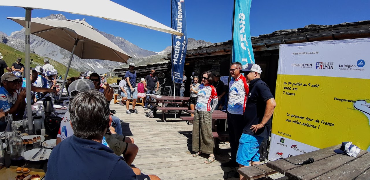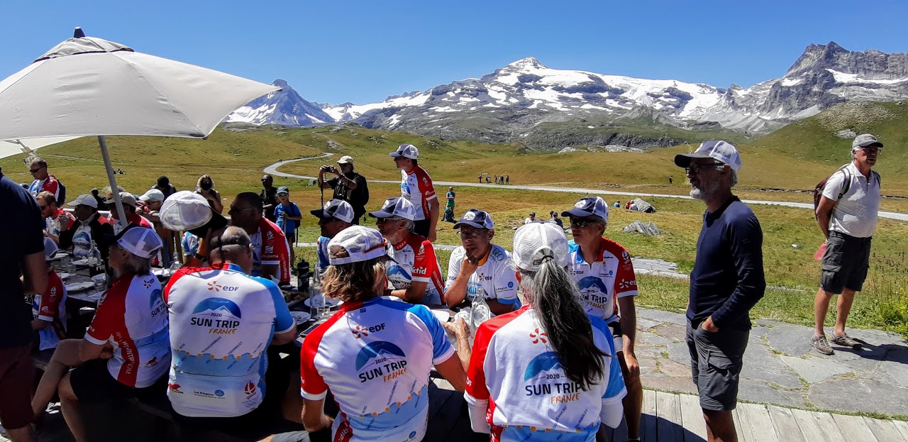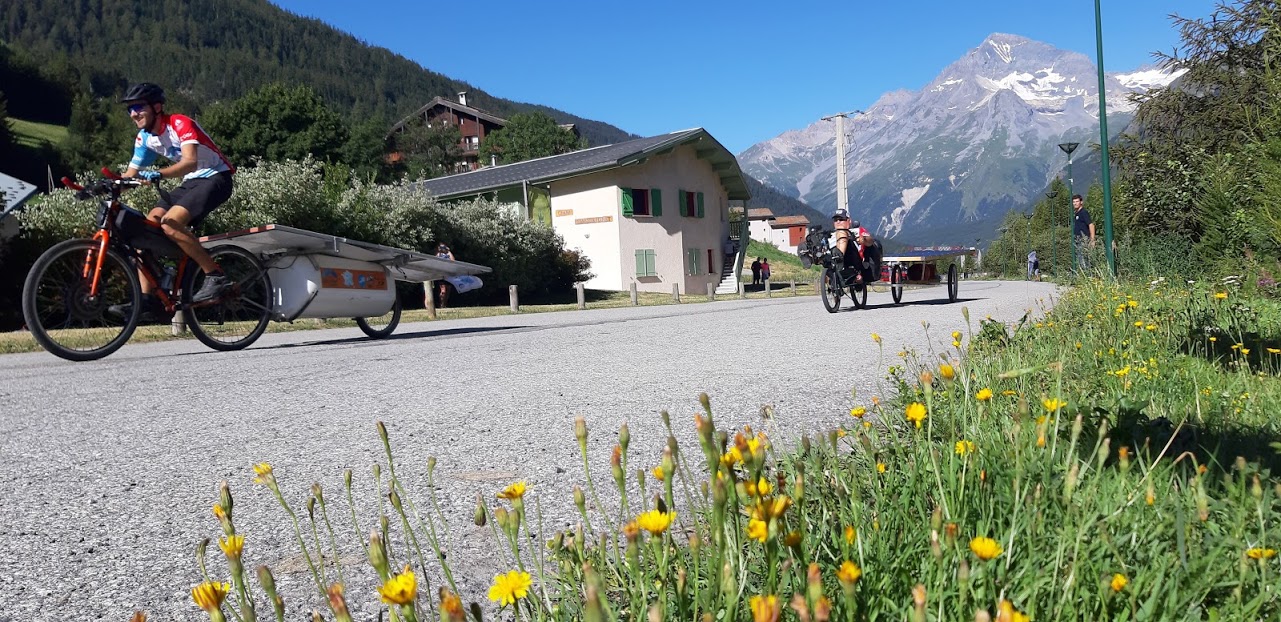 Aujourd’hui, c’est l’étape la plus courte du Sun Trip, mais sportive malgré tout: après quelques kilomètres de descente sur Termignon, on attaque une montée très raide sur 7km avec une pente de 10% en moyenne, mais certains passages dépassent 13%! Évidemment, les moteurs chauffent beaucoup et certains doivent s’arrêter pour laisser refroidir. Superbe panorama sur la Dent Parrachée!