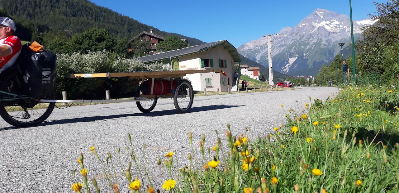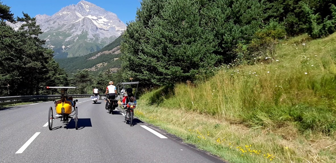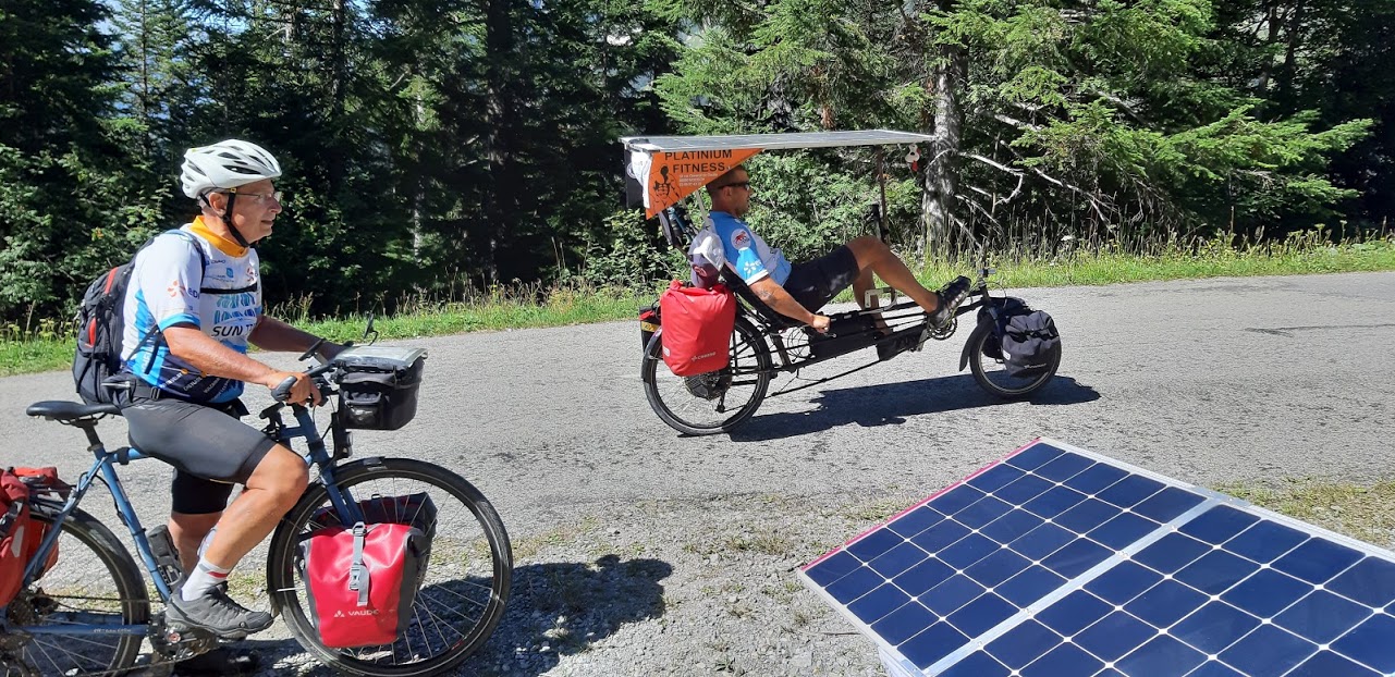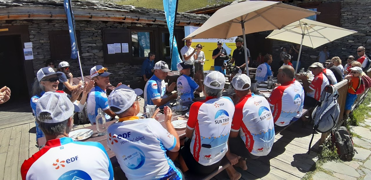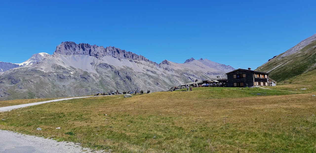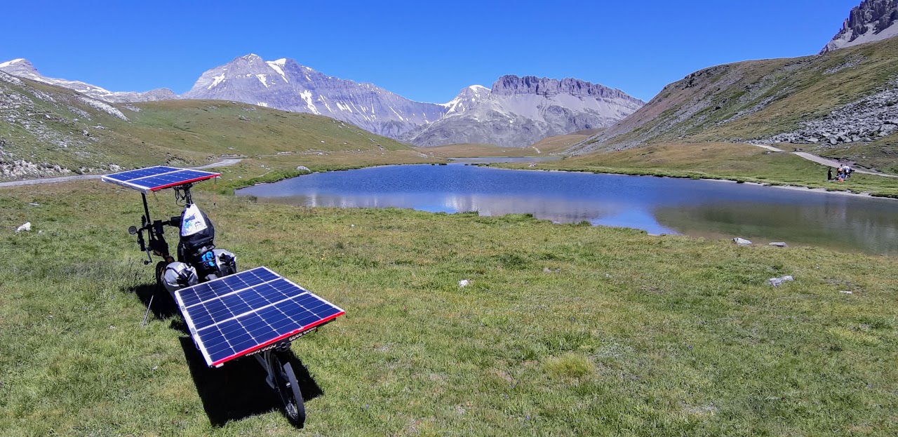 Aujourd’hui, c’est l’étape la plus courte du Sun Trip, mais sportive malgré tout: après quelques kilomètres de descente sur Termignon, on attaque une montée très raide sur 7km avec une pente de 10% en moyenne, mais certains passages dépassent 13%! Évidemment, les moteurs chauffent beaucoup et certains doivent s’arrêter pour laisser refroidir. Superbe panorama sur la Dent Parrachée!