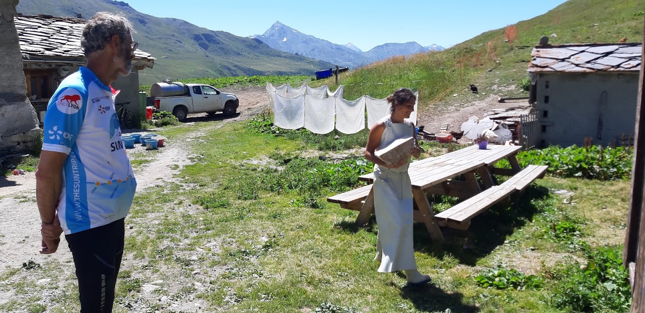 Les moments de pause sont appréciables, notamment celui à côté de l’Alpage de Chavières. Nous venons de nous arrêter avec Victor et Cécile quand Christian nous rejoint. Et comme il ne manque jamais une occasion de découvrir les spécialités locales, il nous entraîne dans la ferme où nous goûtons leurs différents fromages. Nous sommes séduits par le plus spécifique, le Lanserlia, qui porte le nom de la montagne voisine.