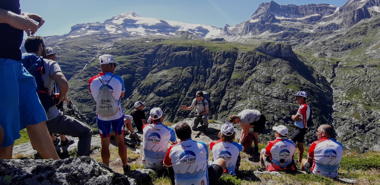 Nous voici arrivés au refuge du Plan du Lac où un bon repas nous attend. Nous sommes accueillis par la directrice du Parc de la Vanoise et le président de l’office de tourisme Haute-Maurienne Vanoise. L’après-midi, nous visitons les environs avec Jean-Yves Ployer, garde moniteur au Parc de la Vanoise. Il nous parle de la flore et la faune du Parc, sa passion rend ses explications passionnantes!