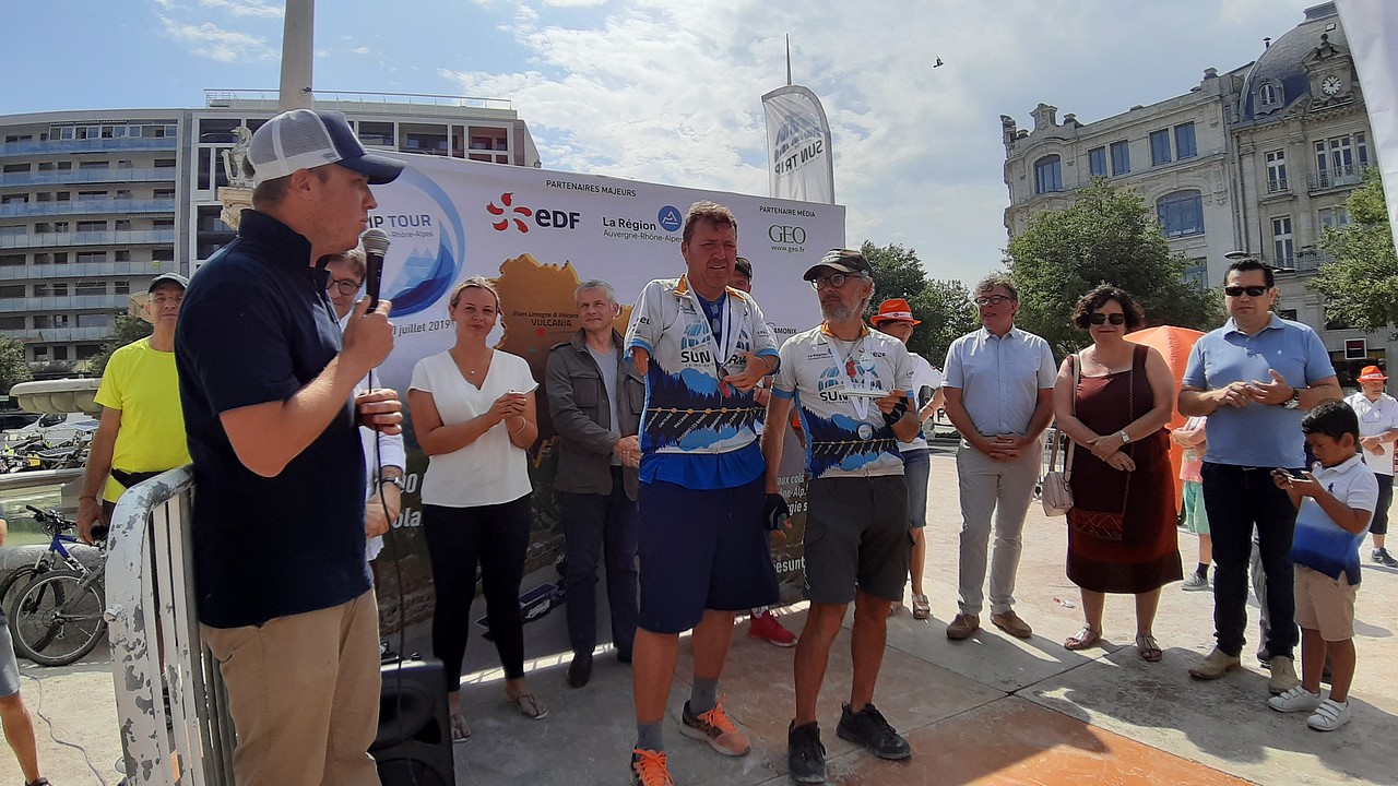 Arrivée solennelle sur la place de la Fontaine monumentale autour de laquelle nous installons nos vélos. Nous partageons cette belle aventure avec le public venu à notre rencontre. Remise des récompenses pour les différents challenges.