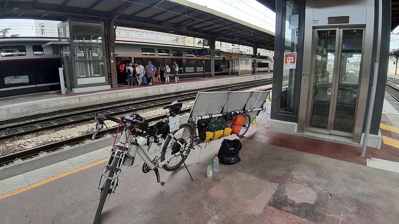 Je quitte la place pour me rendre à la gare SNCF toute proche. Mon vélo prendra place dans le TER qui me ramènera chez moi.