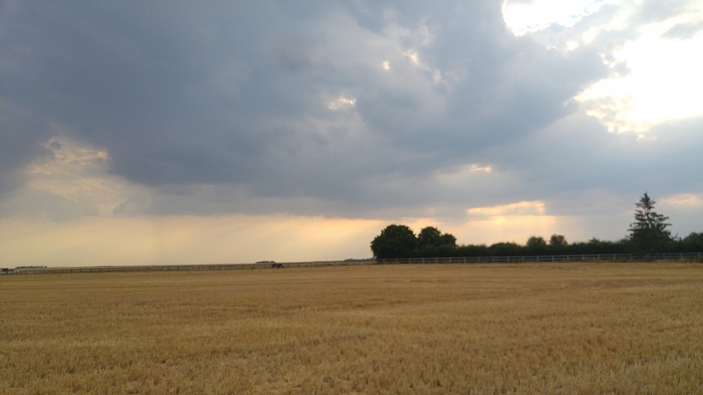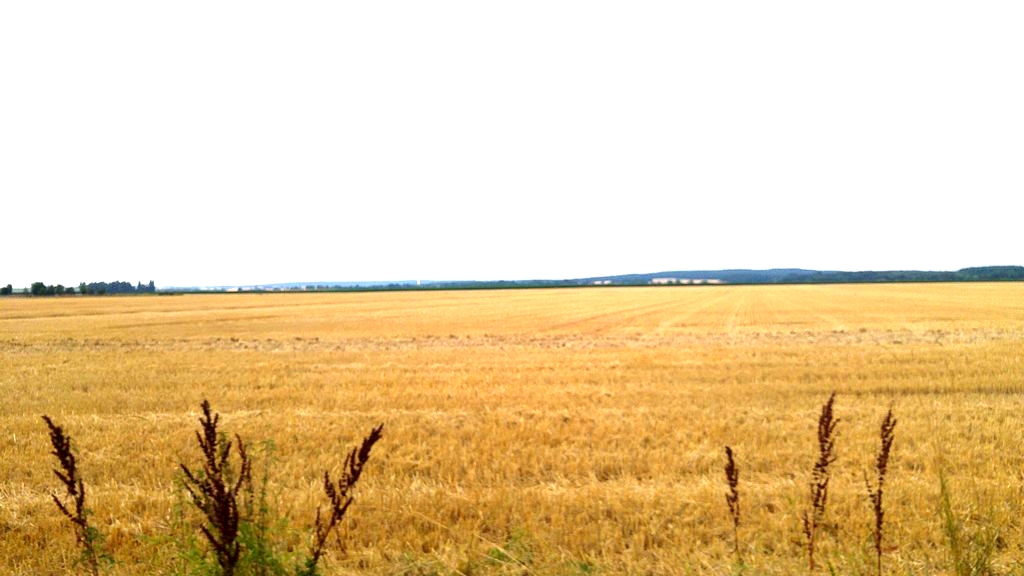 L’après-midi se déroule dans un dédale de petites routes au milieu de grands champs de blés déjà moissonnés. La chaleur nous accable.