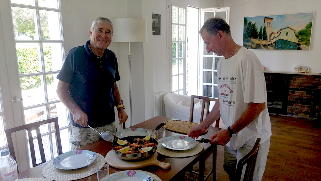 Nous partons après un solide petit déjeuner, très tranquillement car l’étape est très courte : 40km. Paul nous retrouve à l’arrivée avec une paella et une surprise : il a prévenu Francis, suntripeur 2017, qui nous rejoint.